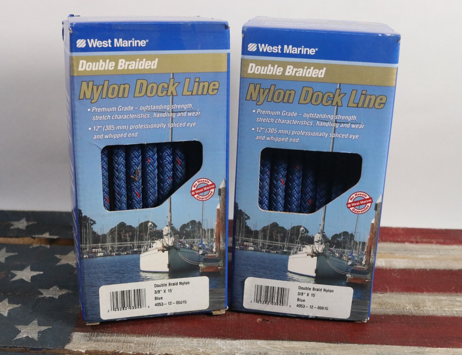 The product is a set of two West Marine double-braided nylon dock lines, measuring 3/8" in diameter and 15' in length. These blue ropes are designed for docking and anchoring purposes in boats. With the West Marine brand reputation and durable construction, these dock lines are a reliable and high-quality option for marine enthusiasts and boating professionals alike.