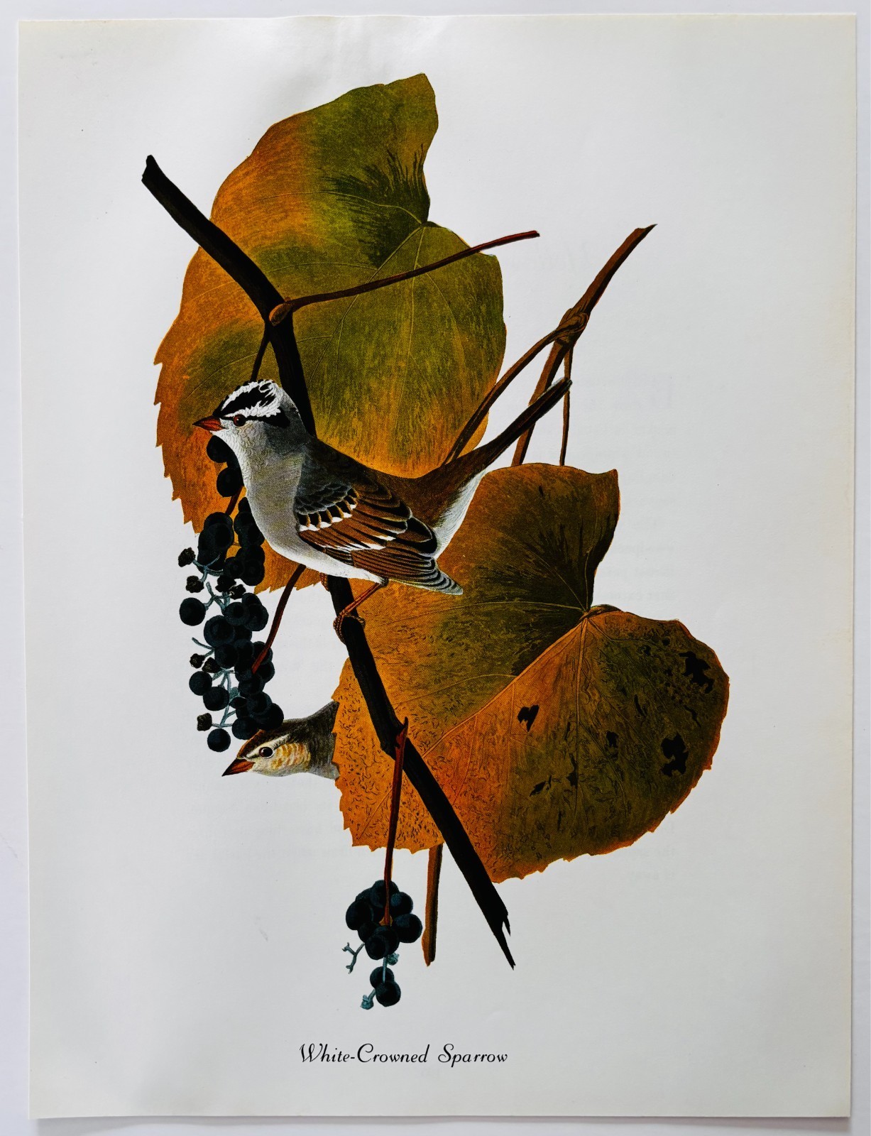 1979 White Crowned Sparrow Color Plate Print Audubon Birds Of America Art F15K