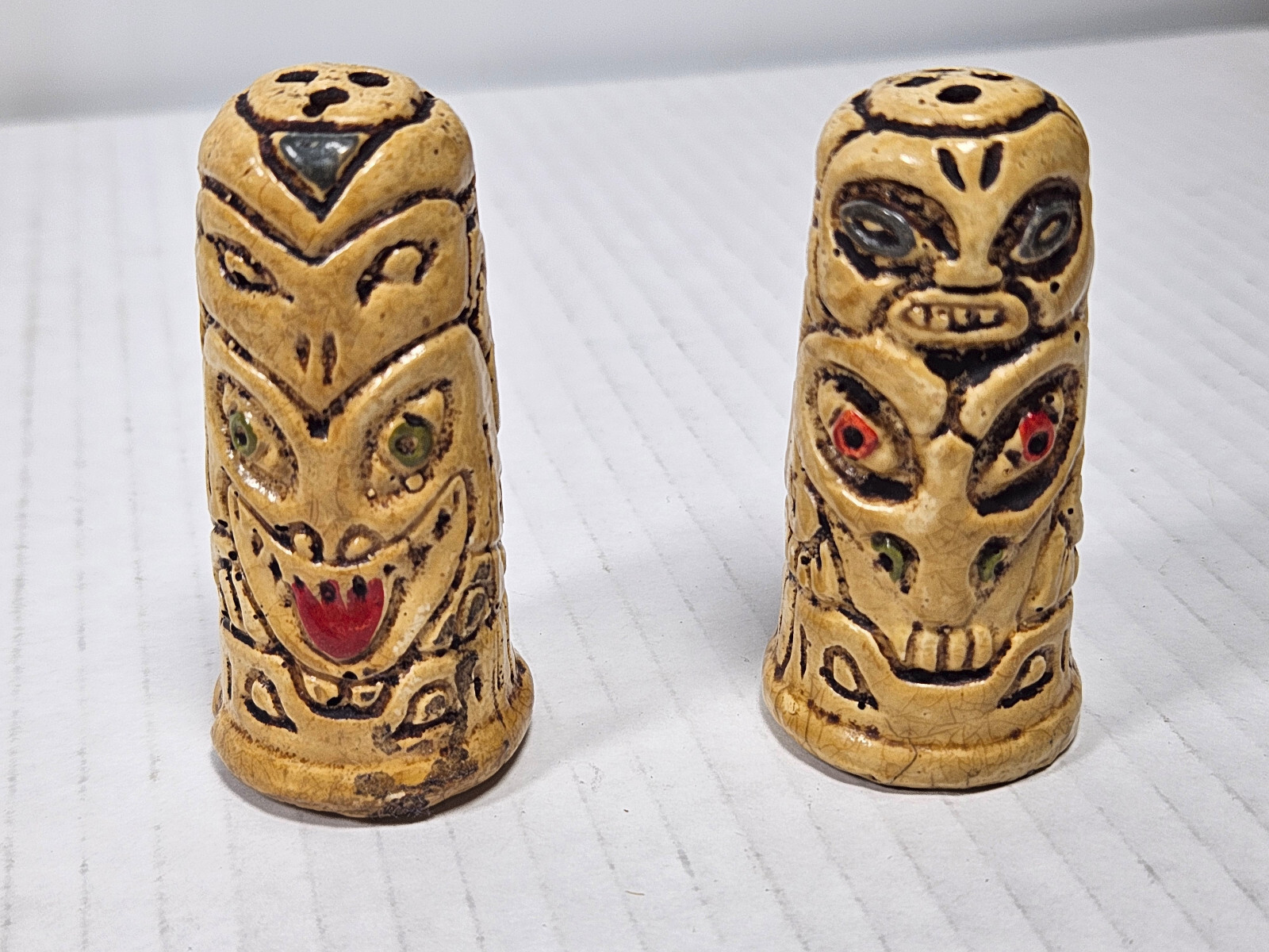 Vintage TIKI Bar Totem Pole Salt Pepper Shakers