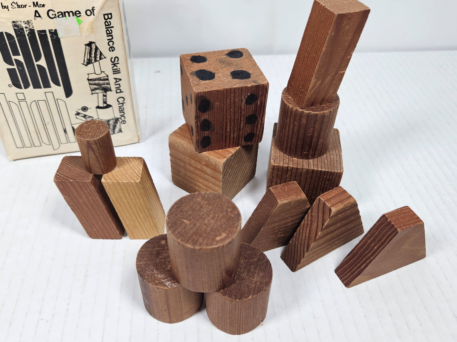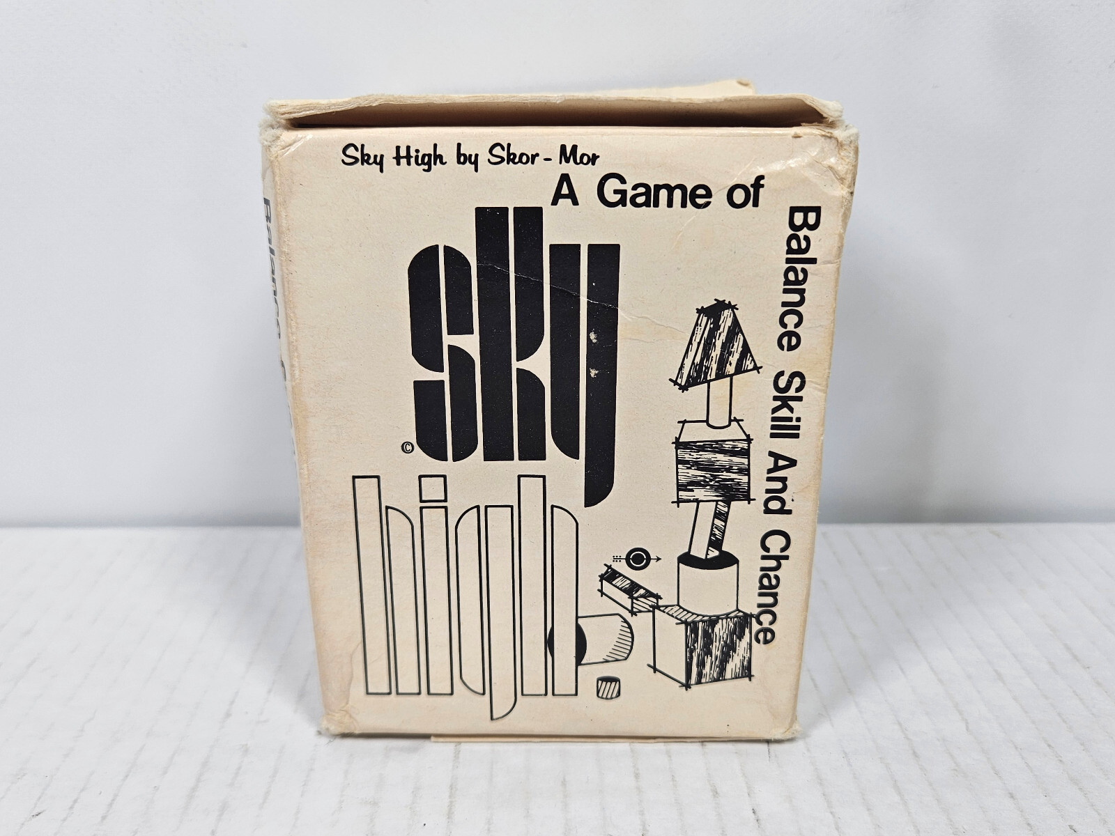 Sky High Game by Skor-Mor 70's Wood Stacking Balancing Game in Box SOME WEAR