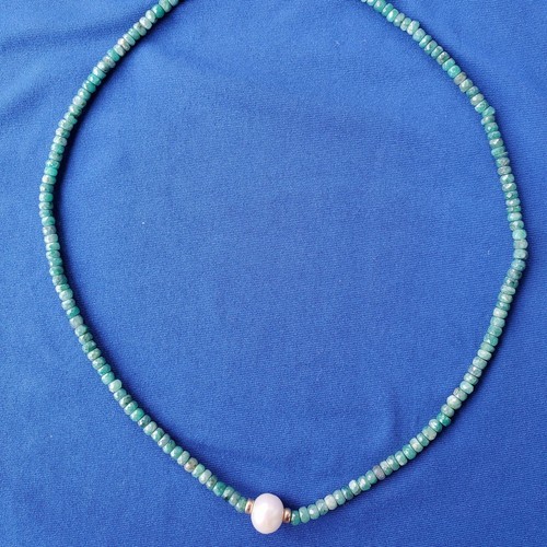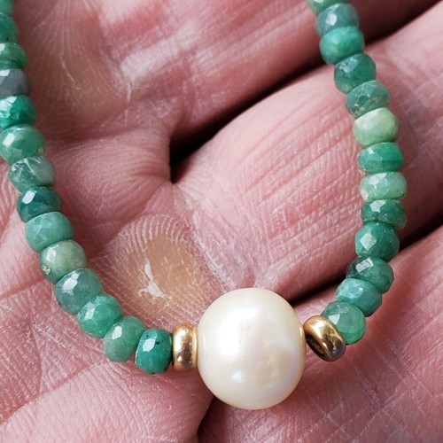 NATURAL EARTH-MINED GREEN EMERALD SOUTH SEAS PEARL 14K NECKLACE.