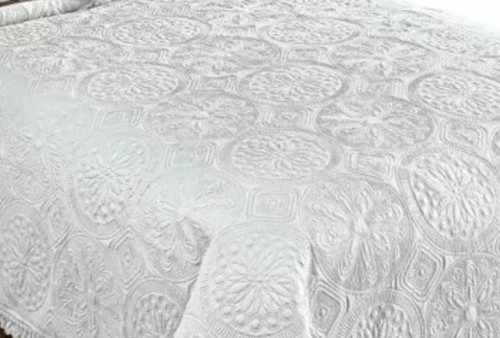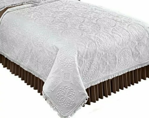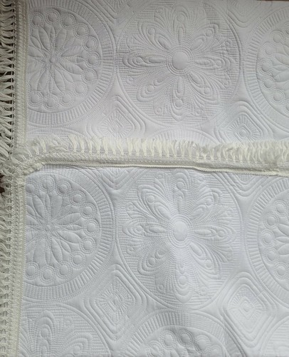 Classic Medallion Pattern Quilt ~ KING Size Quilt ~ White w/Fringe Border