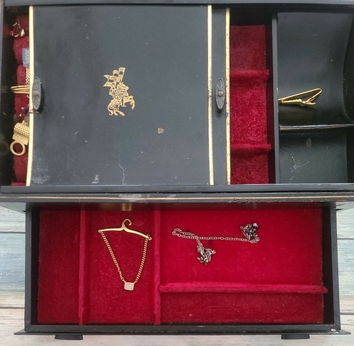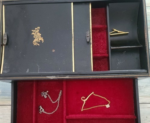 Vintage ~ Swank ~ Black w/Gold ~ Men's Jewelry Box w/Tie Tacks ~ Cuff-Links...