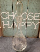 Vintage ~ 15" Tall ~ Wine Decanter w/Glass Stopper ~ Vine & Grape Design Etched