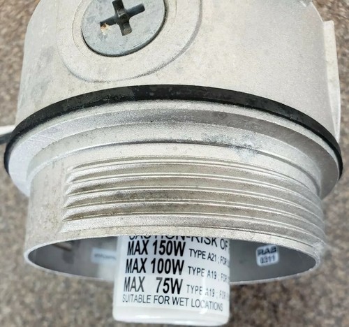 It can use up to 150-Watt incandescent bulb (not included).All metal construction