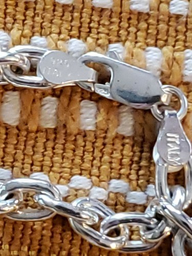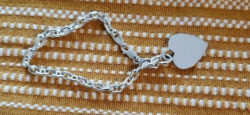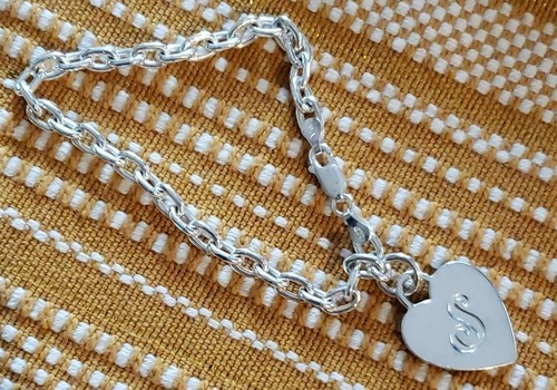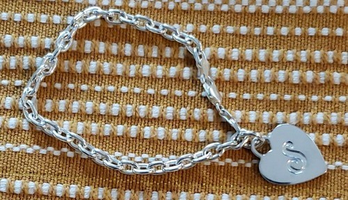 MWS Italy 925~ "S" Engraved ~ Heart Tag Bracelet ~ Oval Link Chain ~ 7.5” Long