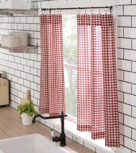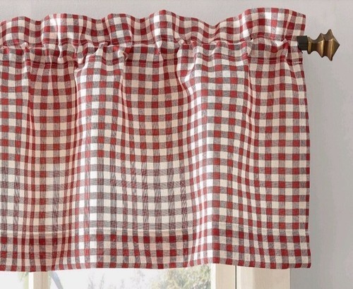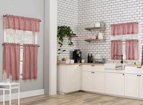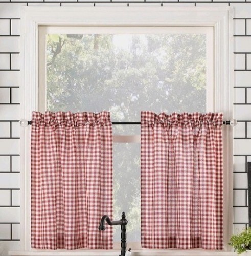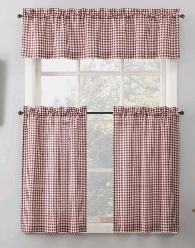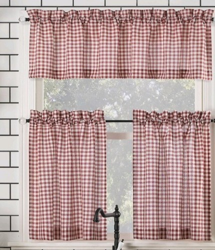 No. 918 ~ 3-Piece Valance & Tiers Curtain Set ~ Red & White Farmhouse Plaid