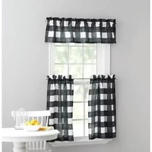 Mainstays 3-Piece Valance & 36" Tiers Curtain Set ~ Black & White Check Pattern