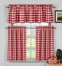 Kate Aurora ~ 3-Piece Lodge Tier Curtain Set ~ 28" x 36" ~ Red & White Gingham