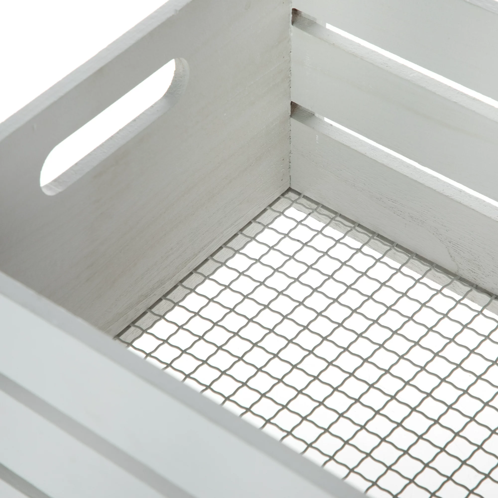 Mainstays ~ Wire & Wooden ~ Gray & White ~ Crate/Basket ~ 14.75 x 11.5 x 6.75