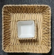 Oversized Chip & Dip ~ Rattan/Wicker Basket with Ceramic Bowl ~ 14" x 14"