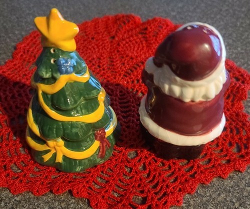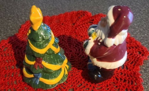 Holiday ~ Santa ~ Christmas Tree ~ Ceramic ~ Salt & Pepper Shakers (75)