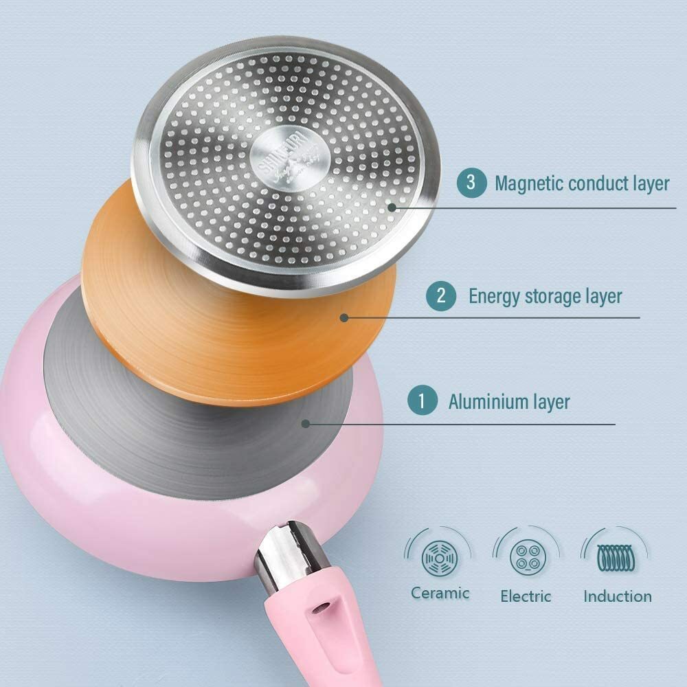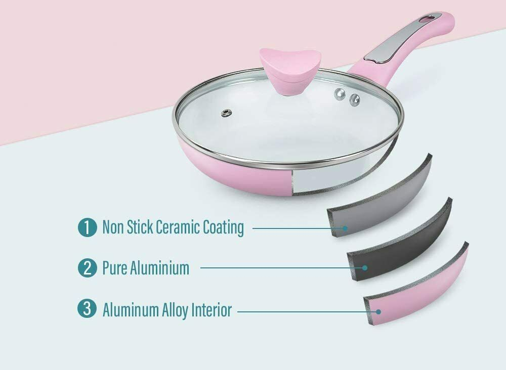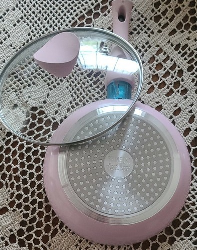 Shineuri ~ 8" Fry Pan ~ Pink ~ Aluminum ~ Non Stick Frying Pan ~ W/Lid
