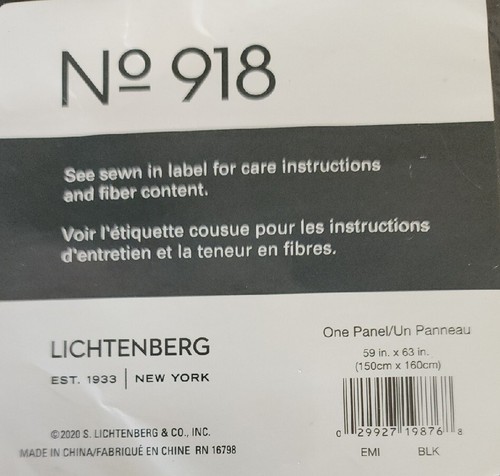 No. 918 ~ Lichtenberg ~ Single Curtain Panel ~ 59" x 63" ~ BLACK ~ Polyester