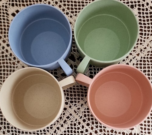 Four (4) ~ Wheat Straw Rice/Plastic Handled Mugs ~ 12 oz. Coffee ~ Drinking Cups