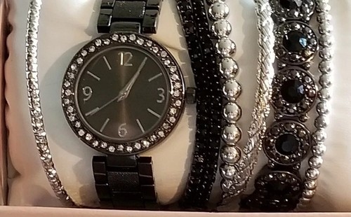 Women's ~ Black Quartz Watch & Six (6) Piece Bracelet Set ~ Costume Jewelry