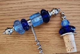 Wine Accessories ~ 1 Bottle Stopper ~ 1 Corkscrew ~ Gemstones & Silver Hardware