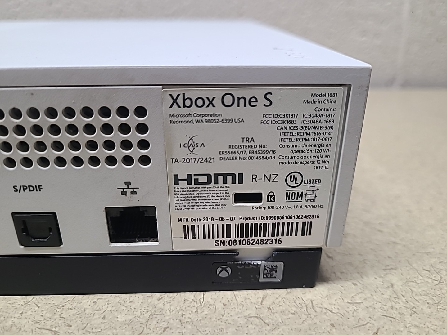 The Microsoft Xbox One S 500GB Model 1681 is a white home console manufactured by Microsoft in 2018. It offers 4K (UHD) resolution and features like Blu-Ray compatibility, Wi-Fi capability, and internet browsing. This model has HDMI and USB-A connectivity, a 500GB storage capacity, and is designed for NTSC-U/C (US/Canada) regions. While this specific console is not in working condition, it can still be valuable for those looking for parts or considering it for repair.