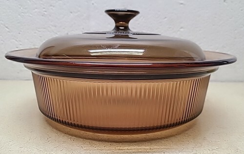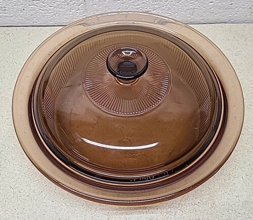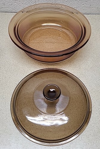 This vintage bowl from Vision Cookware is a rare find for collectors and enthusiasts. The bowl is made of high-quality porcelain material and comes in a beautiful amber color with cranberry glass. The V-33-B pot pan is 2.5Qt in size and comes with a lid. The brand is well-known for its durability and long-lasting quality. This bowl is a vintage original and is perfect for decorative cookware, dinnerware, and serveware.