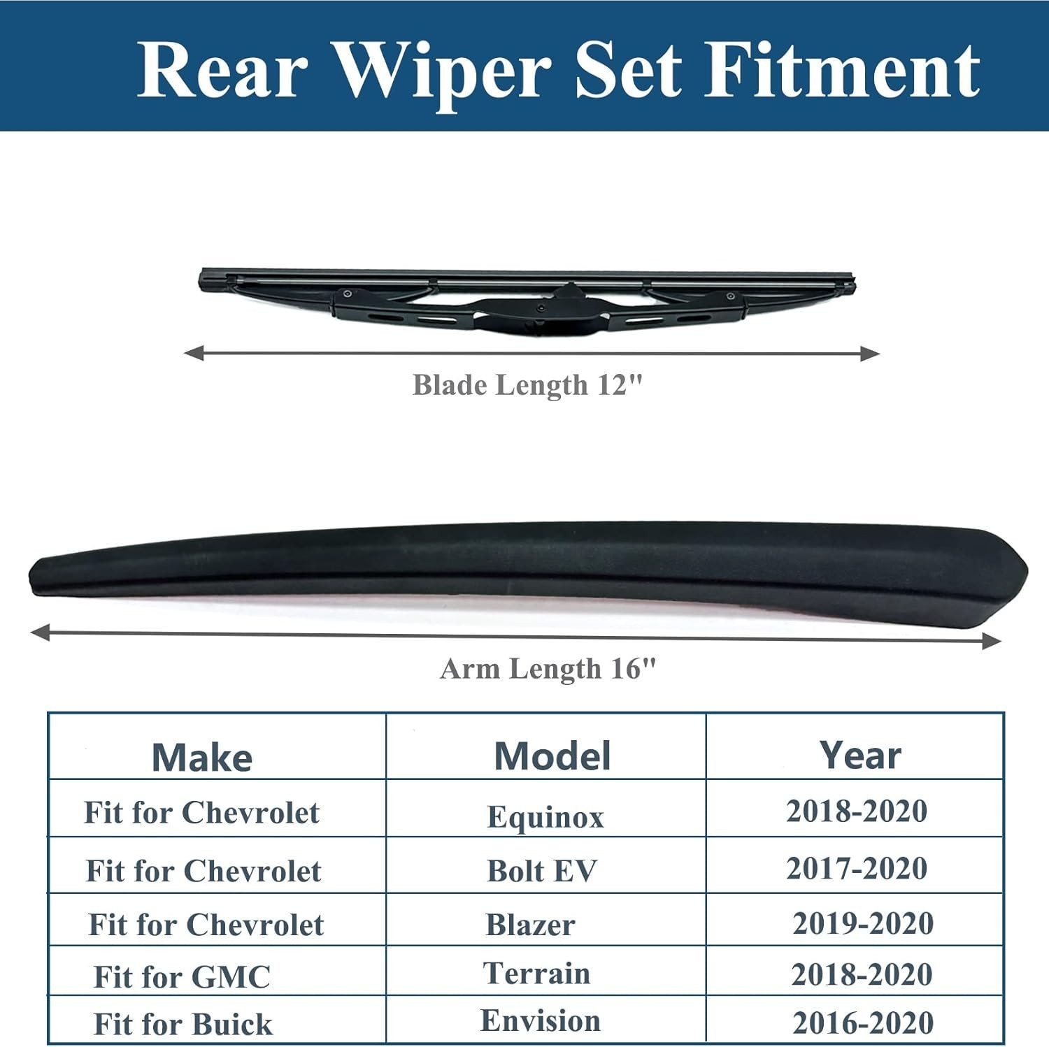 Rear Windshield Wiper Arm Blade Set for Chevy Equinox 2018-2020/ GMC Terrain ...