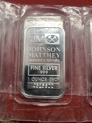 Five Johnson Matthey 1oz Silver Bars in and similar items
