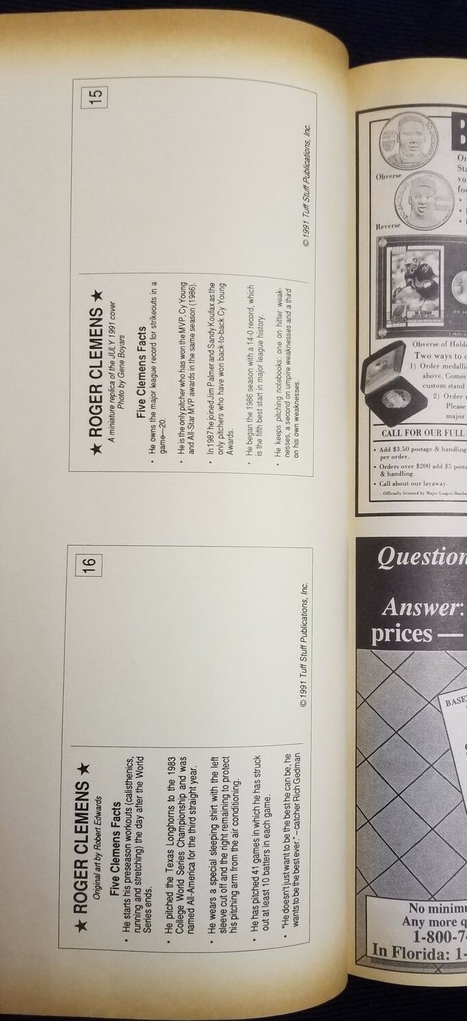 Tuff Stuff Oversized Sports Price Guide Publication Magazine July 1991 Clemens