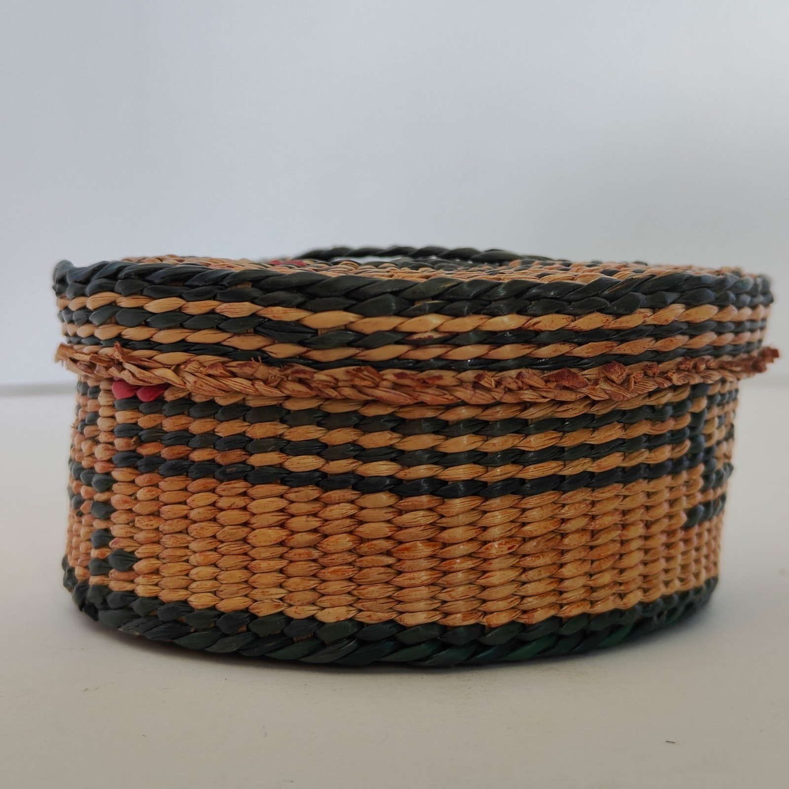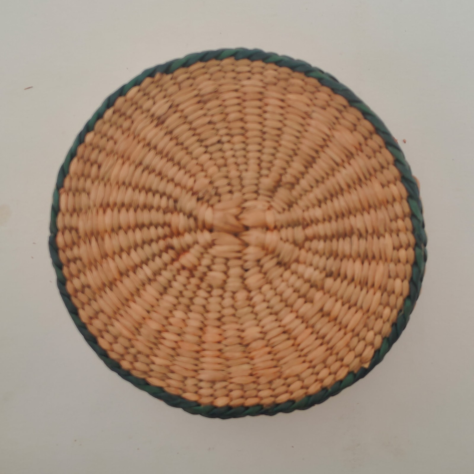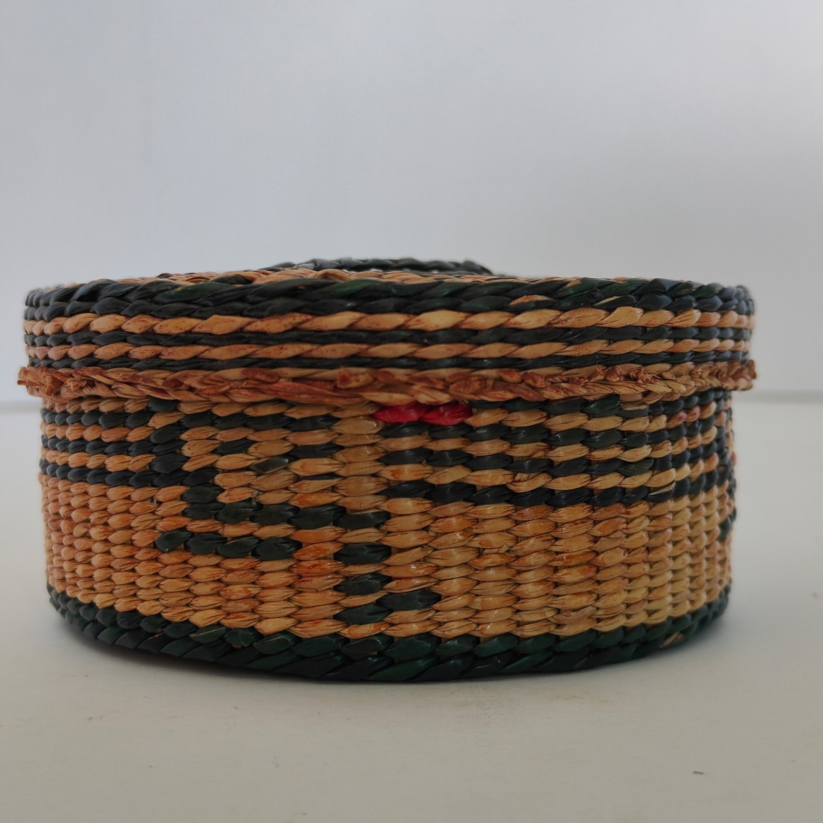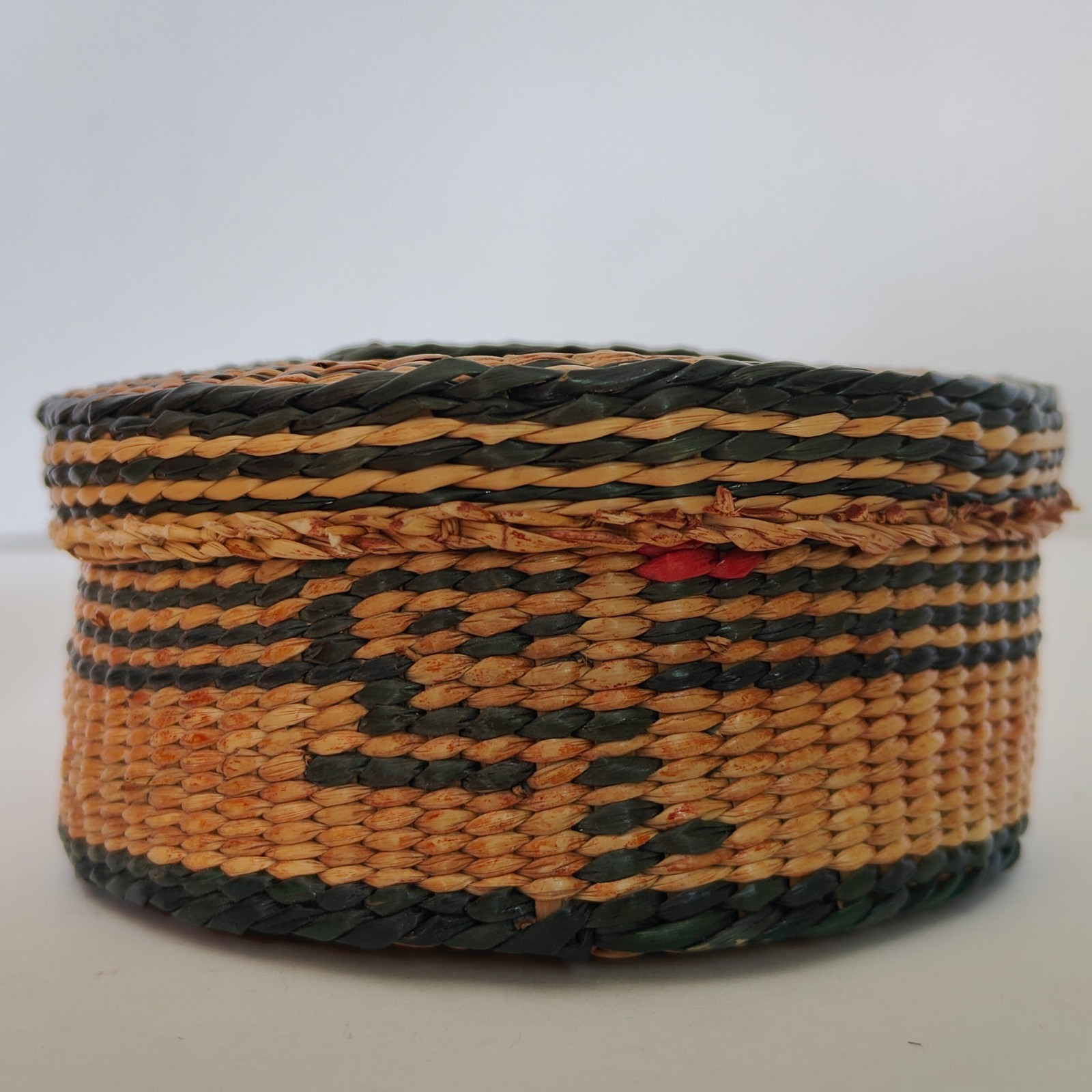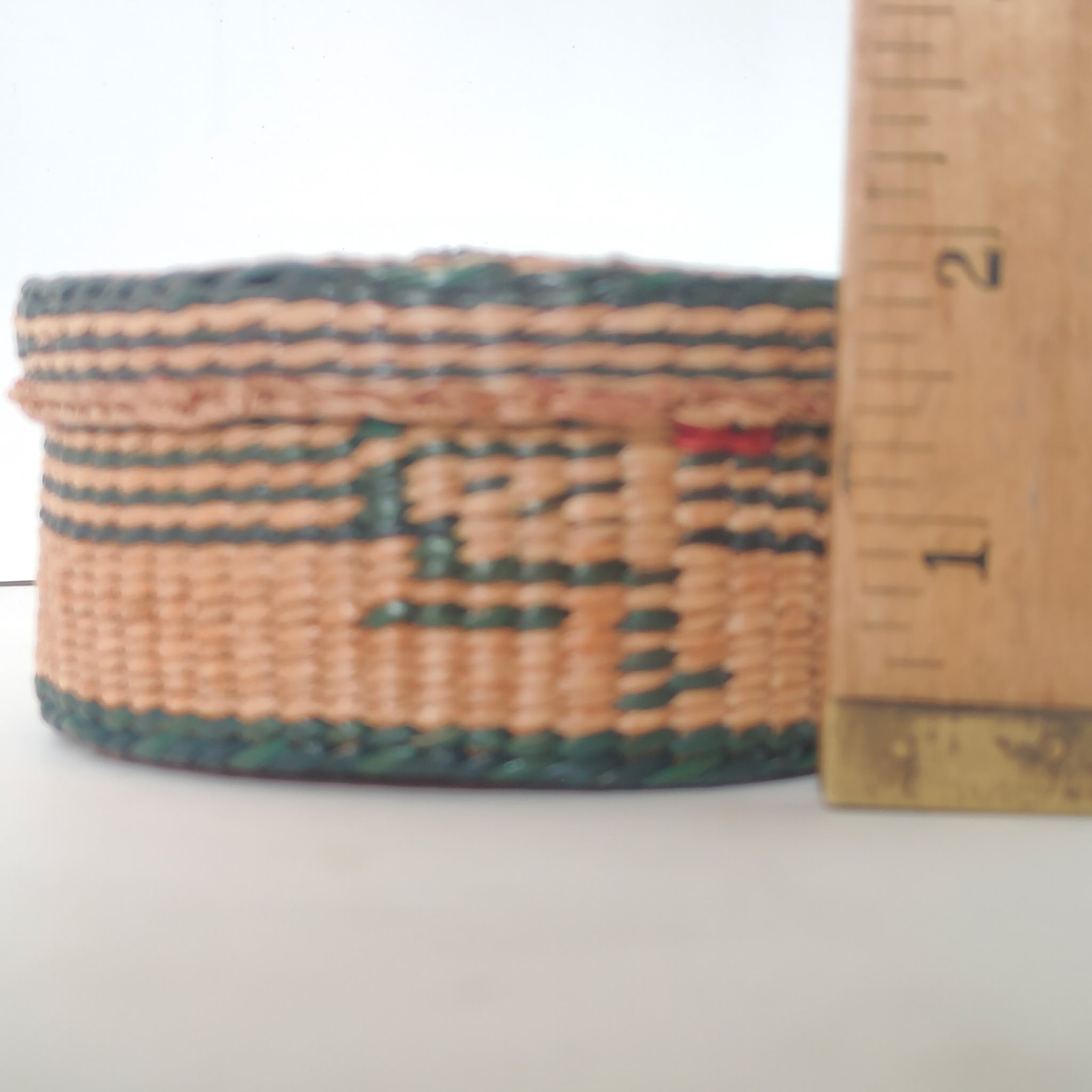Vintage Native American Sweetgrass Woven Basket With Lid 4"Dia 2"H Decor Trinket