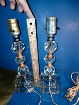 2 Vintage Cut Crystal Table Lamps Multi Faceted 12.5 " Boudoir Mid Century works