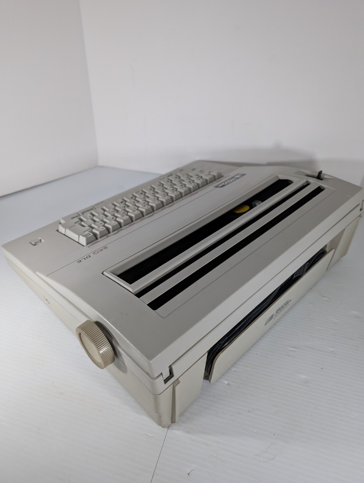 The Vintage Smith Corona Typewriter Portable Electric 240 DLE with Cover 5A is a classic typewriter from the H series, featuring the iconic Smith Corona brand. Made in Singapore, this unit is a single typewriter that is tested and functional. Ideal for business and office use, this typewriter offers a nostalgic and reliable option for those looking to add a retro touch to their workspace. Its portable design and electric functionality make it a convenient and efficient tool for typing tasks.