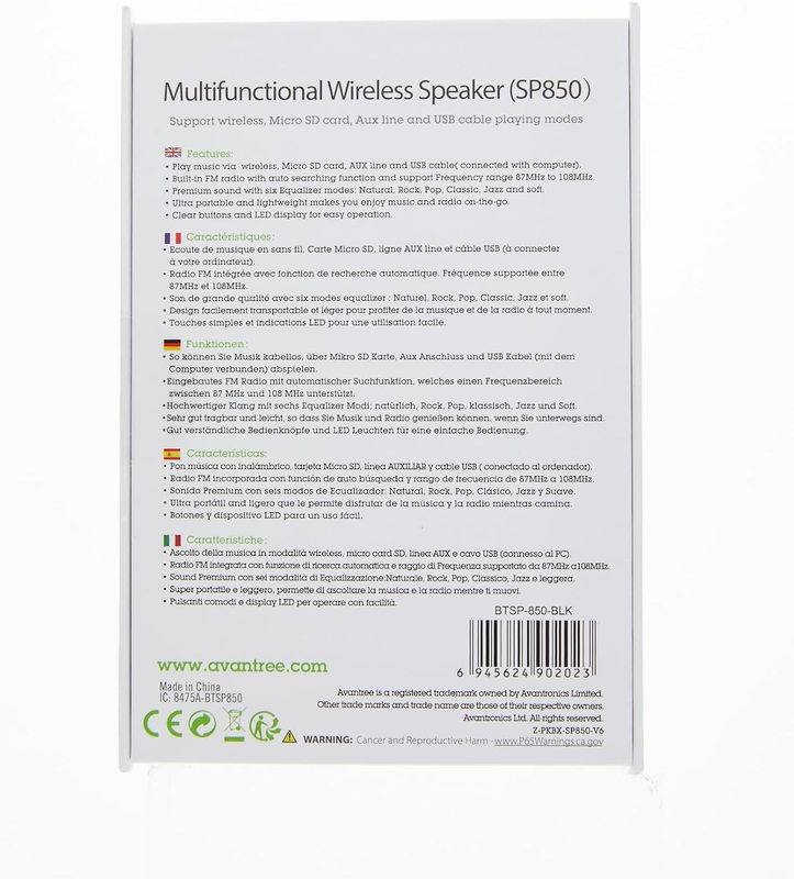 ?FM / Bluetooth / SD Card?Enjoy radio, wireless streaming, or MP3 playback from one compact device.