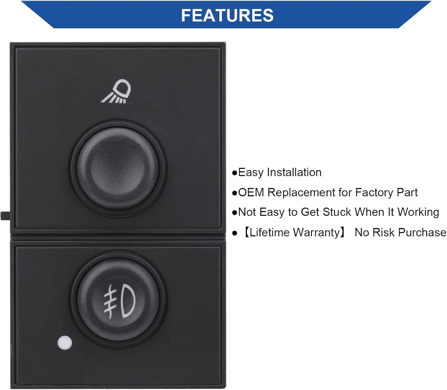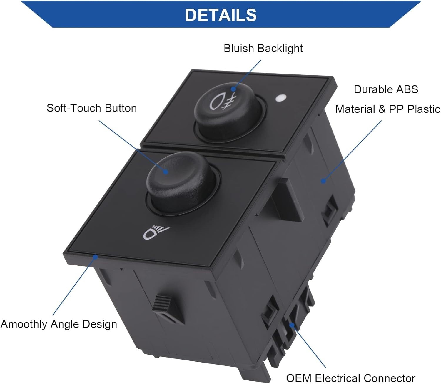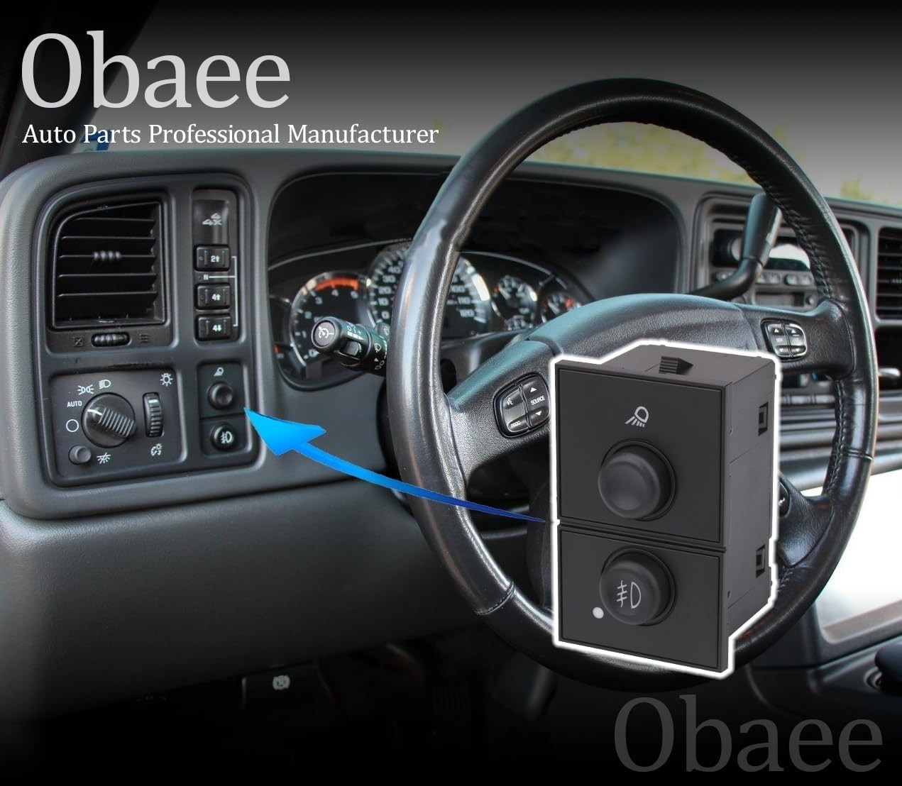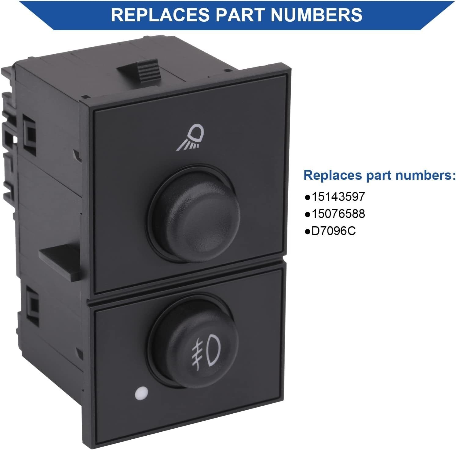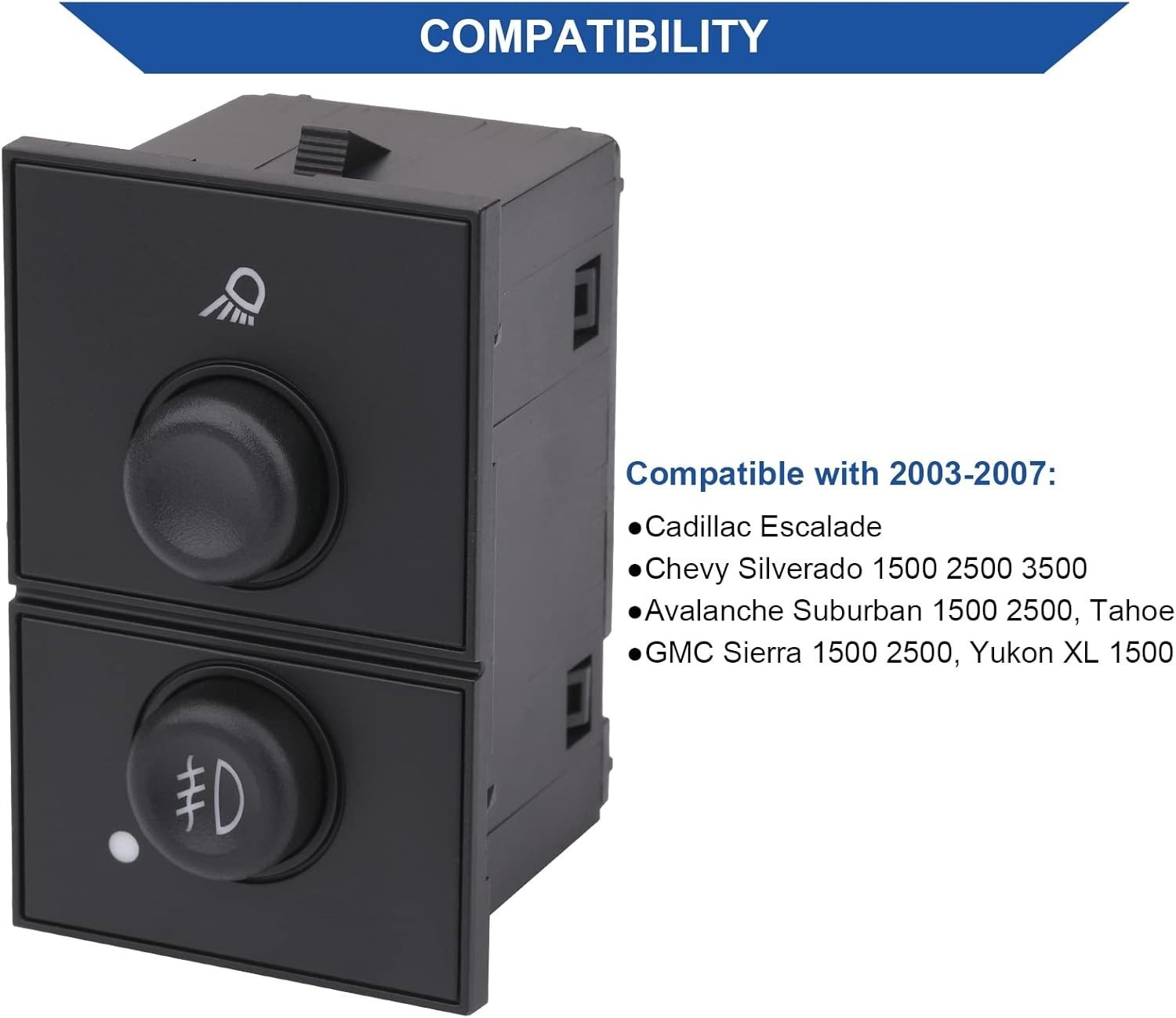 This automotive fog light switch compatible with Chevrolet Chevy Silverado, GMC Sierra model years 2003 2004 2005 2006 2007, Chevy Suburban1500 2500/Avalanche1500 2500/Tahoe, GMC Yukon/Yukon XL 1500/Yukon XL 2500, and Cadillac Escalade/Escalade ESV/Escalade EXT model years 2003 2004 2005 2006 .