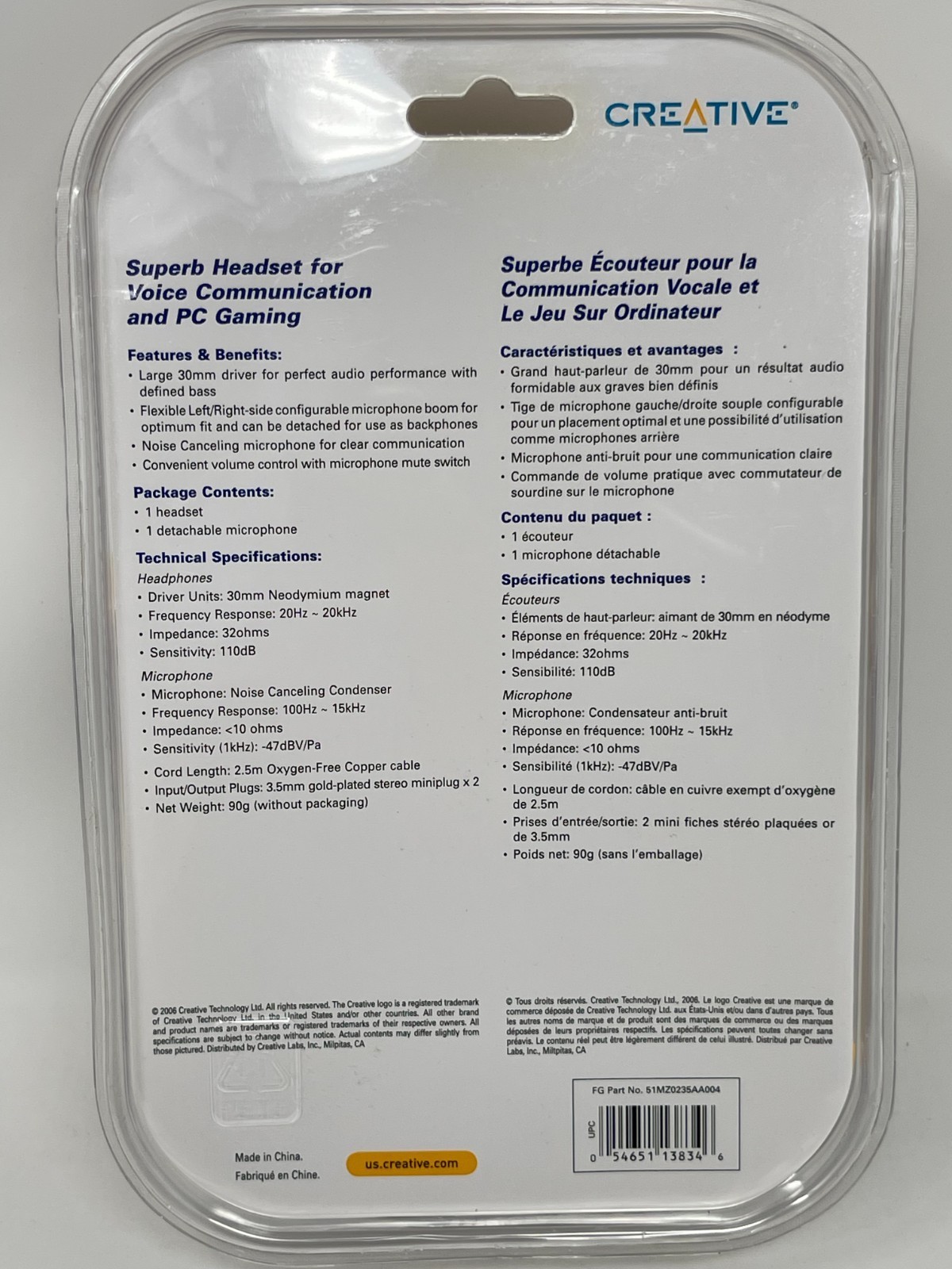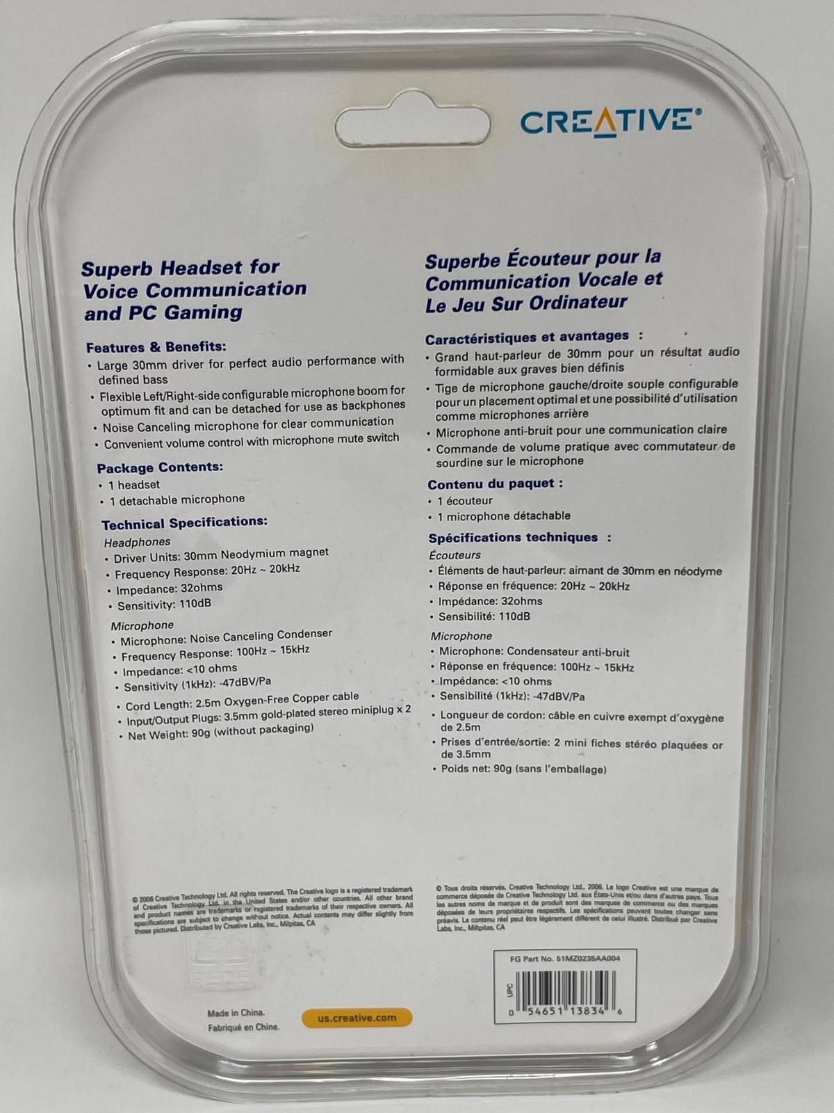 Creative HS-400 3.5mm Circumaural Headset HS400 Internet Chat PC Gaming Headphones