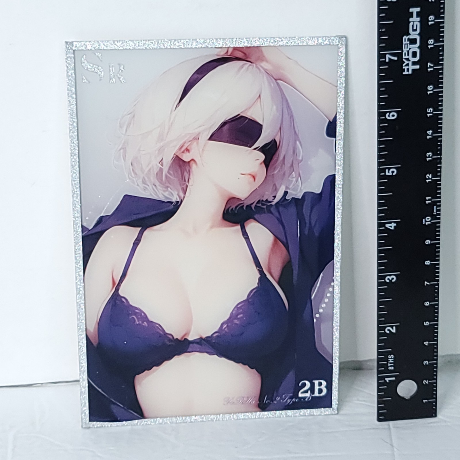 2B Glitter Acrylic Blue Premium Waifu Card Anime Girl Wall Art Oversize Board A5