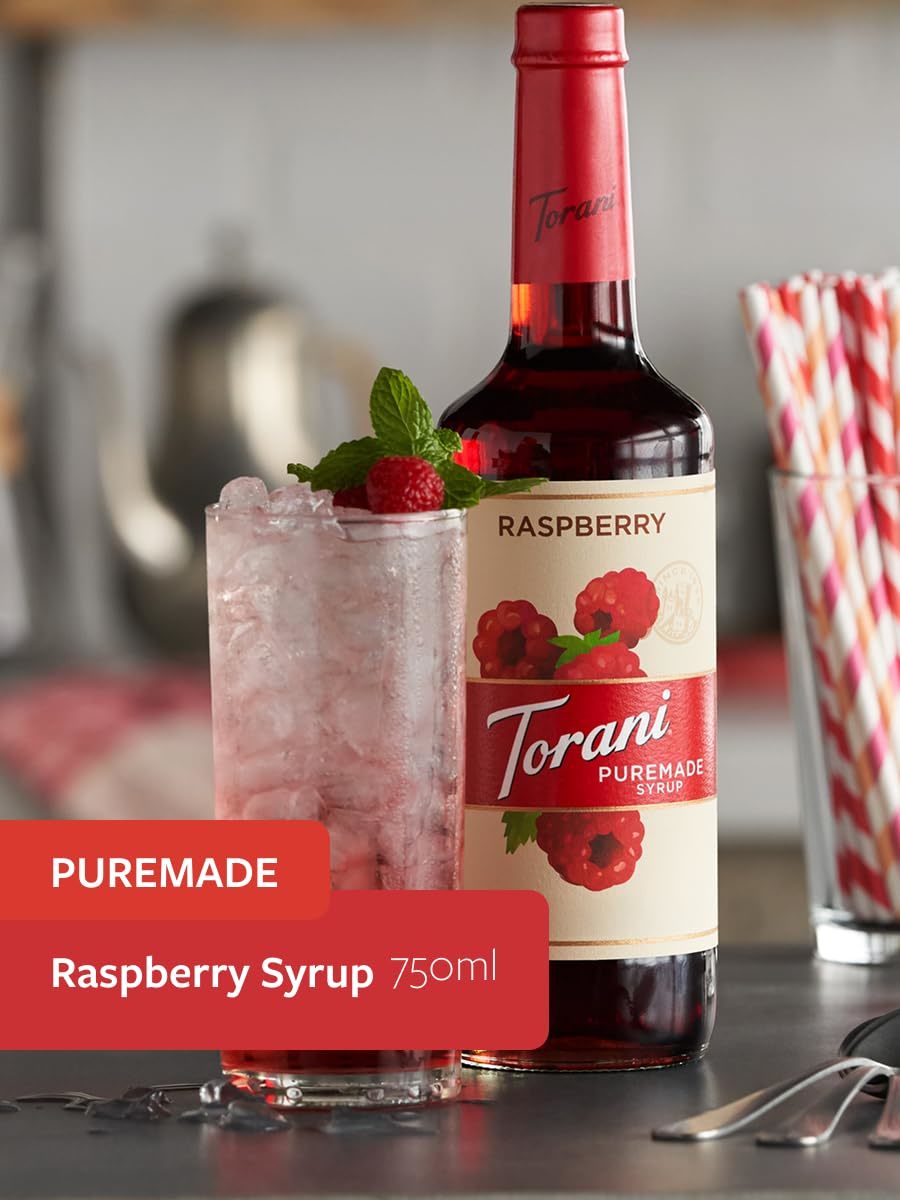 Torani Puremade Syrup, Raspberry Flavor, Glass Bottle, Natural Flavors, 25.4 Fl.