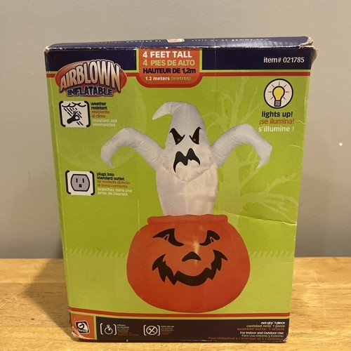 Halloween Gemmy 4 FT Lighted Ghost in Pumpkin Airblown Inflatable w/Box