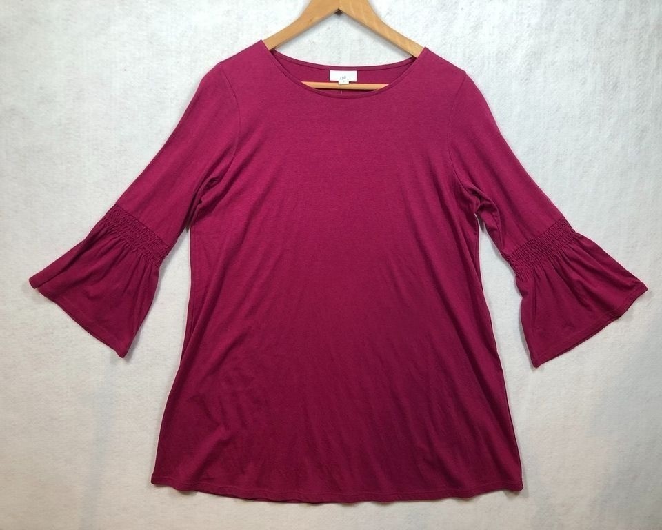 J.Jill Tunic Top Fuchsia Sangria Pink 3/4 Bell Sleeve Oversized Womens Small S