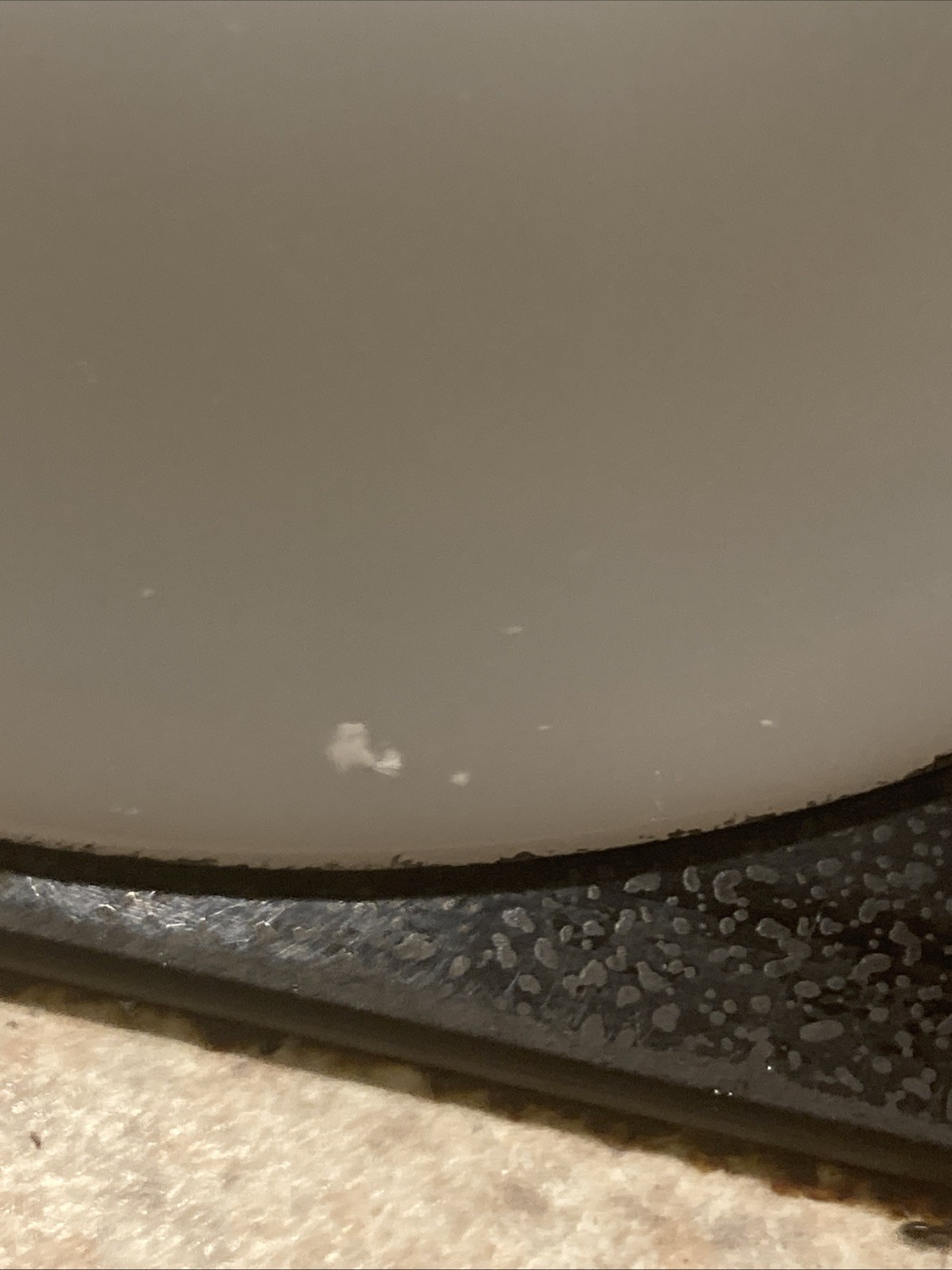 NO CHIPS. THE GOLD TRIM WILL SHOW SOME WEAR. I WOULD SAY IT IS STILL VERY NICE. SEE PICS.