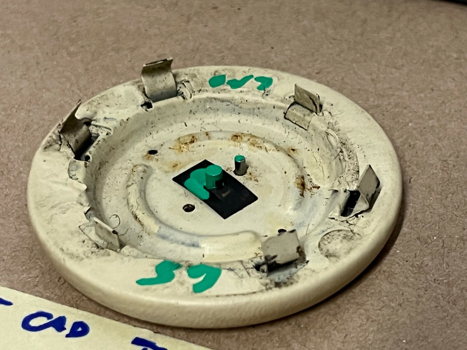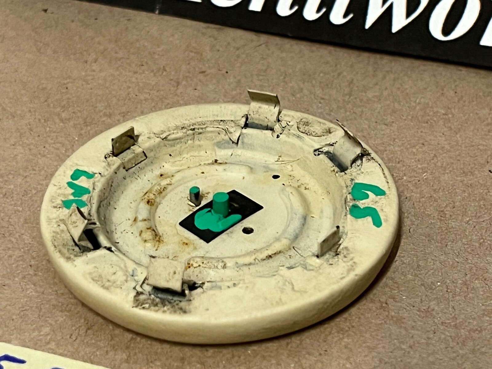 These OEM horn caps are very hard to find in any condition. This is in good condition. The crest is in good condition, all mounting pins are intact on the emblem. All mounting tabs on the horn button are intact. Please view all pictures as they are a part of the description.