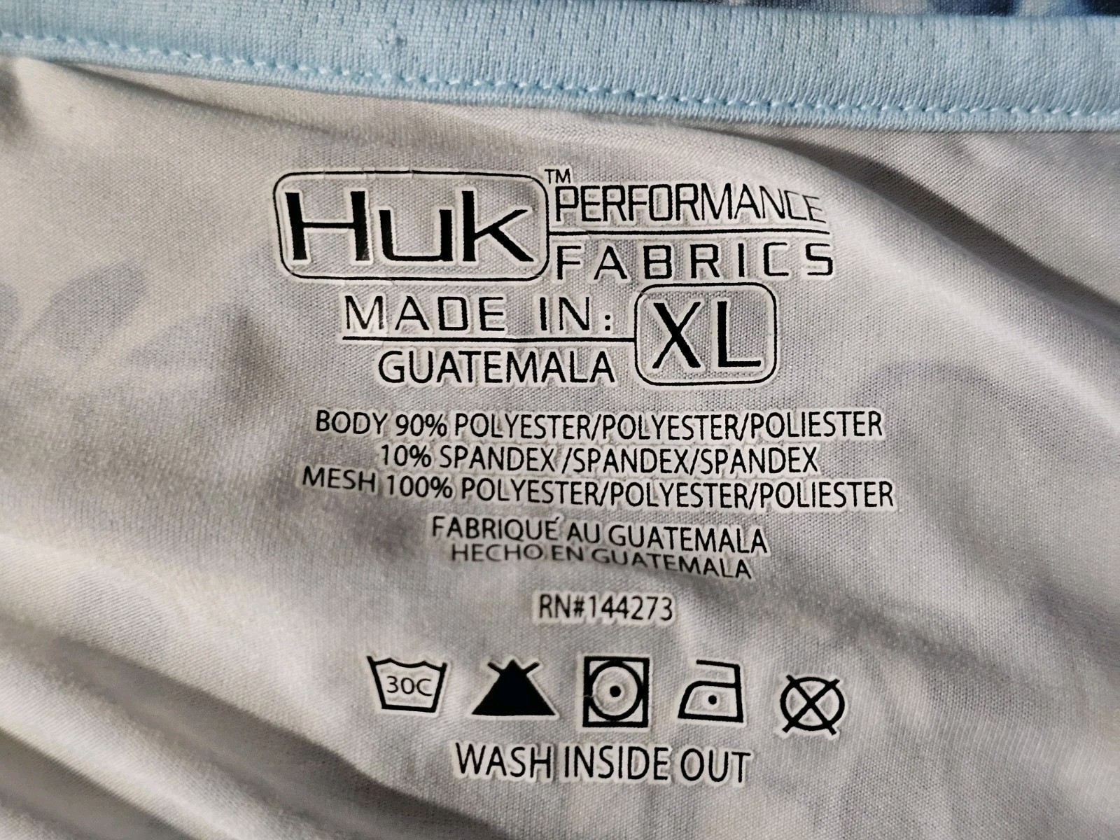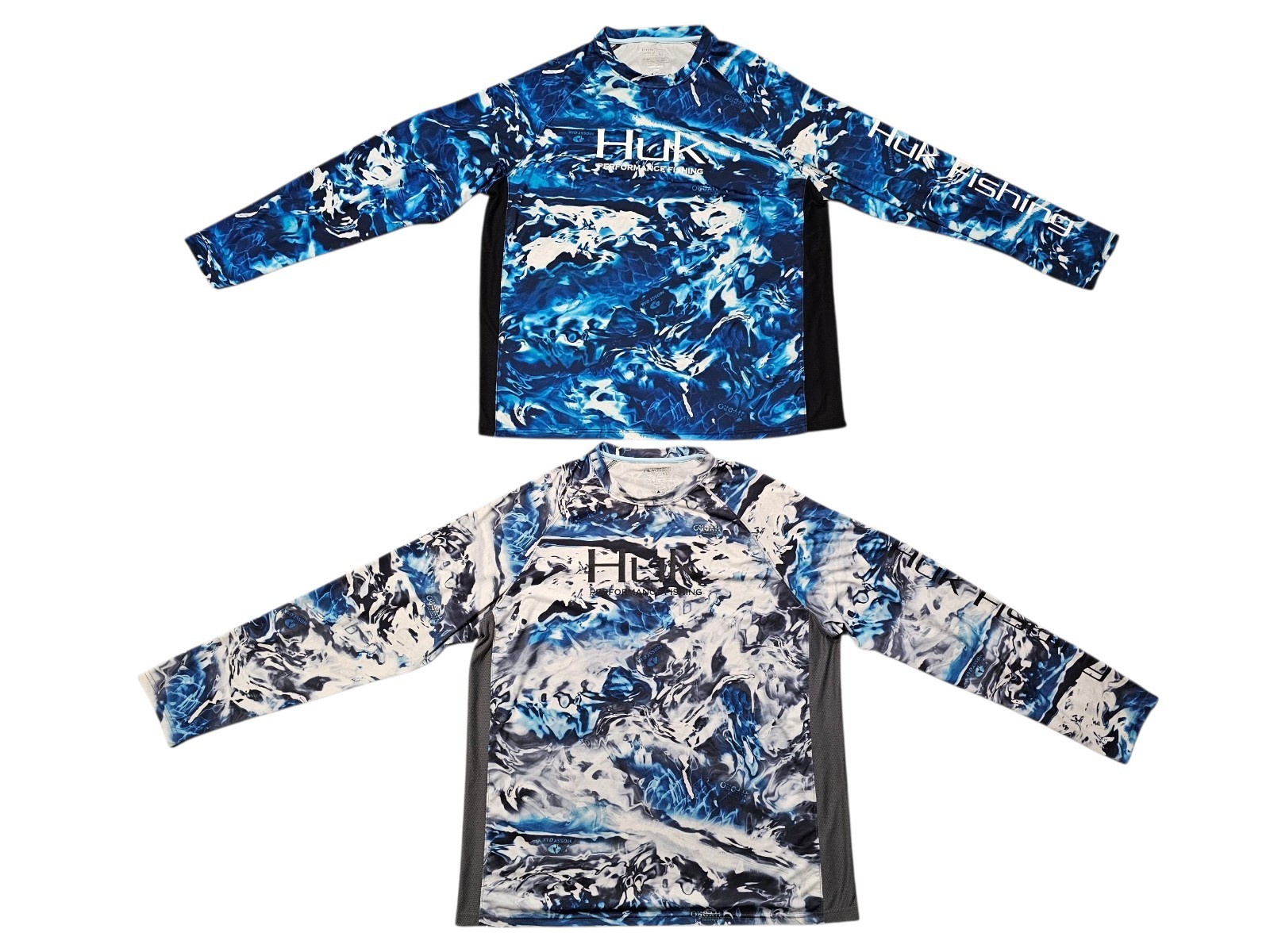 Lot of 2 Huk Men?s Performance Fishing Shirt in Blue Mossy Oak Elements Hydro is a versatile and stylish top designed for outdoor activities like fishing, hiking, and walking. Made from 100% polyester microfiber fabric, this lightweight and breathable shirt features a crew neck and long sleeves, making it suitable for all seasons. The camouflage pattern and logo accents add a touch of nature-inspired style, while its moisture-wicking properties ensure you stay dry and comfortable during your adventures. Perfect for any man who loves the outdoors and wants to look good while staying active.