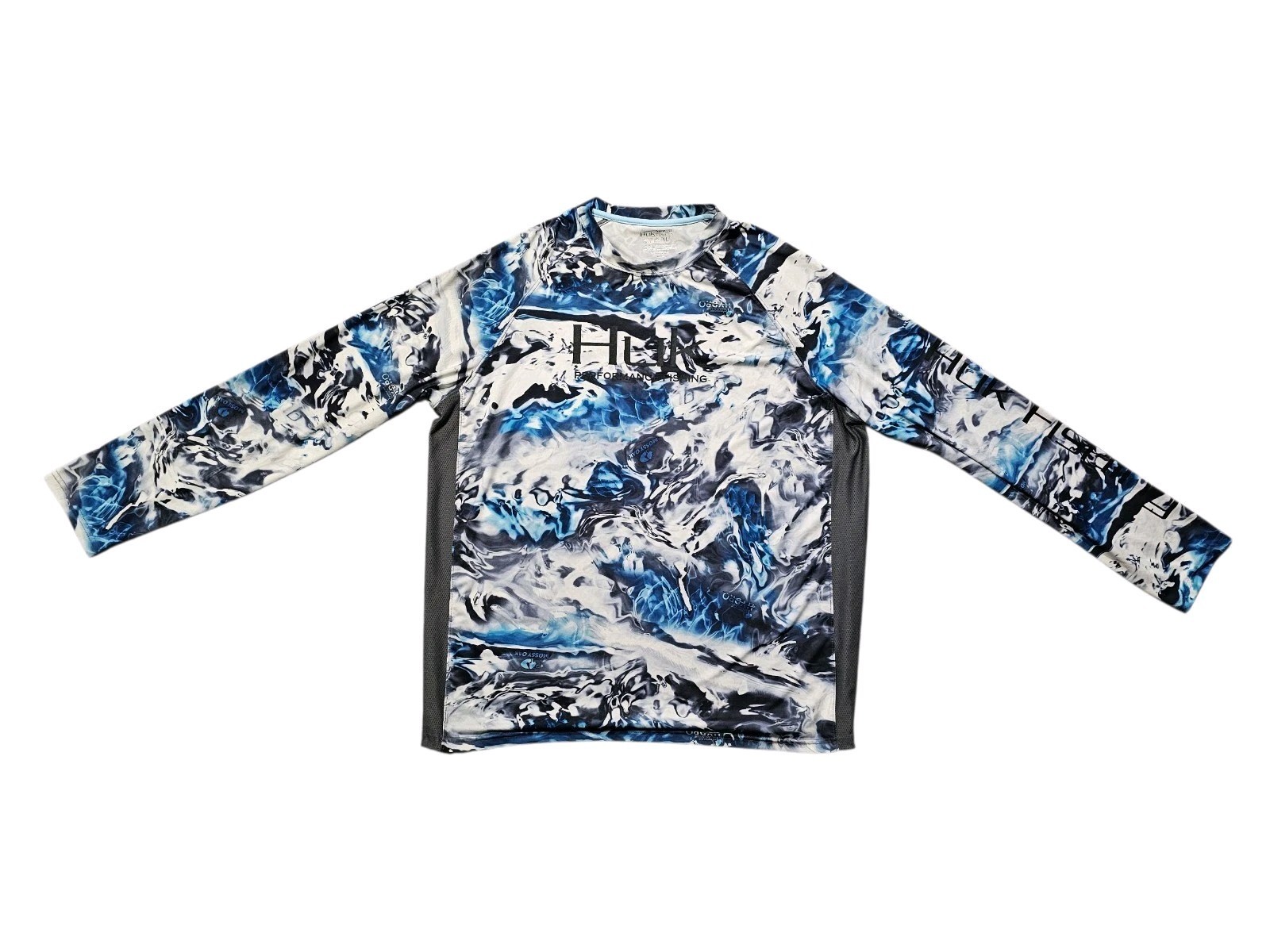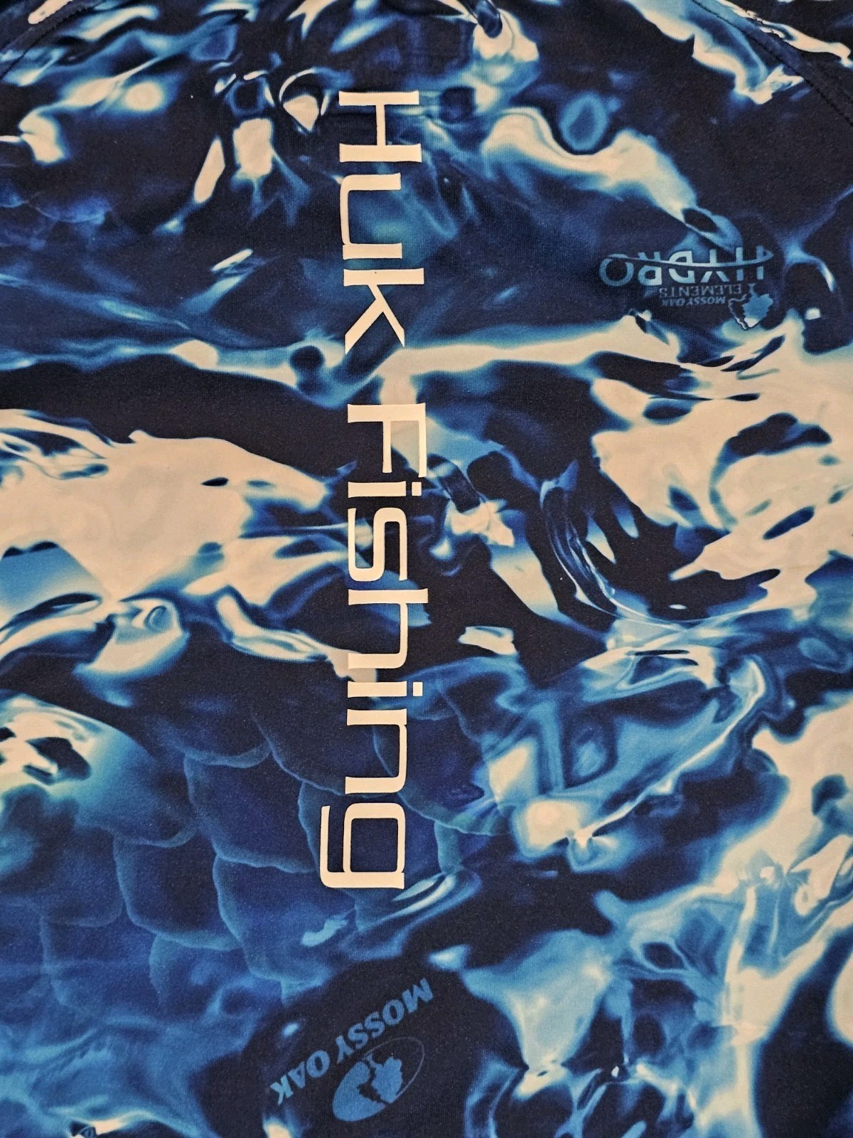 2 Huk Men’s Performance Fishing Shirt Blue Mossy Oak Elements Hydro Long Sleeve