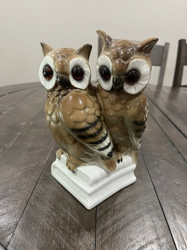 Vintage Owls Gerold Porzellan West Germany Brown Glass Eyes Porcelain
