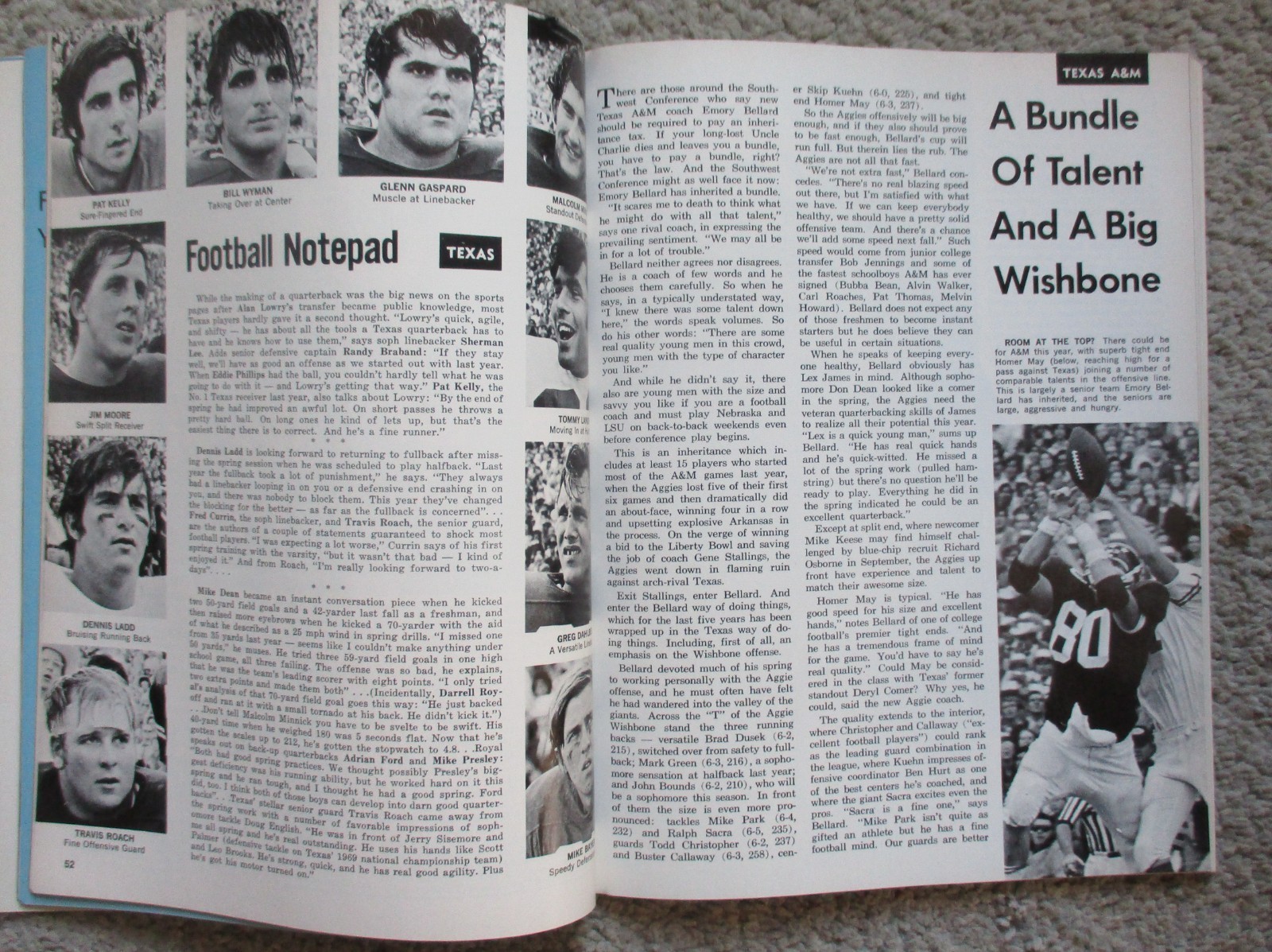 1972 DAVE CAMPBELL'S TEXAS FOOTBALL Magazine - Texas A&M's BRAD DUSEK Cover