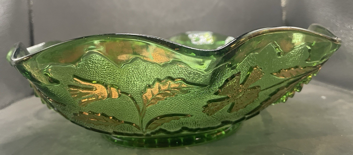 ANTIQUE U.S. Glass EAPG DELAWARE Emerald Green Oval Banana Boat 7” X 12” EUC