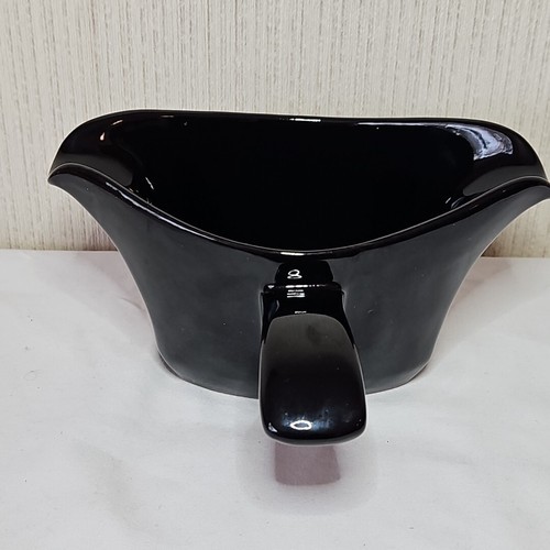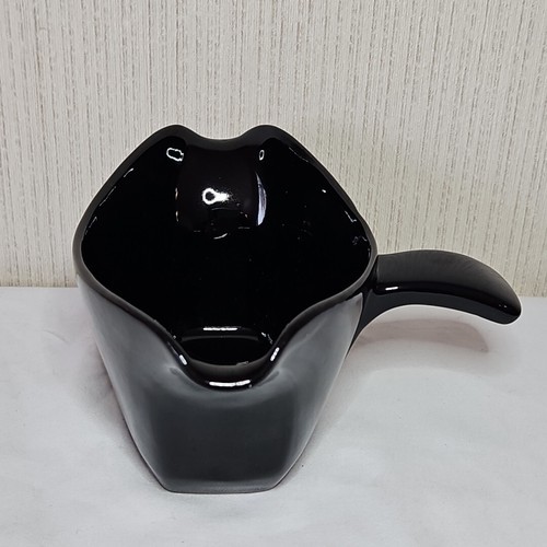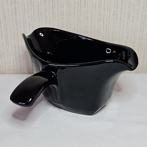 Frankoma Black Sauceboat Pottery Double Spout Gravy Boat Handled Pitcher Server