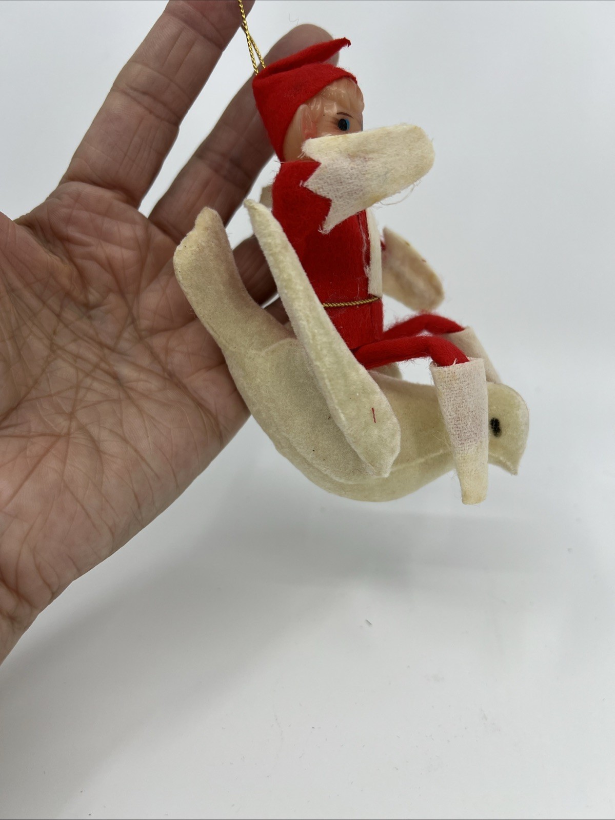 2 RARE VTNG Christmas Elf Pixie Knee Hugger Green Red Felt Flying Flocked Doves