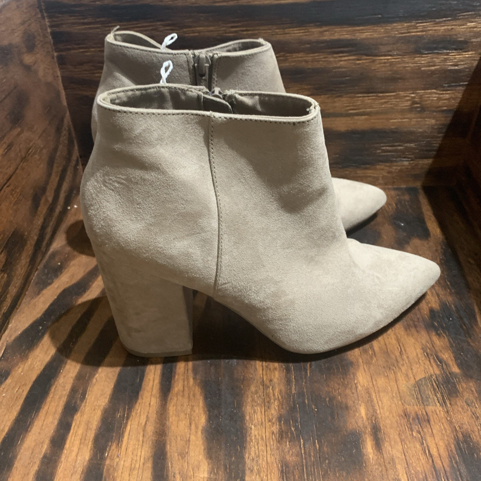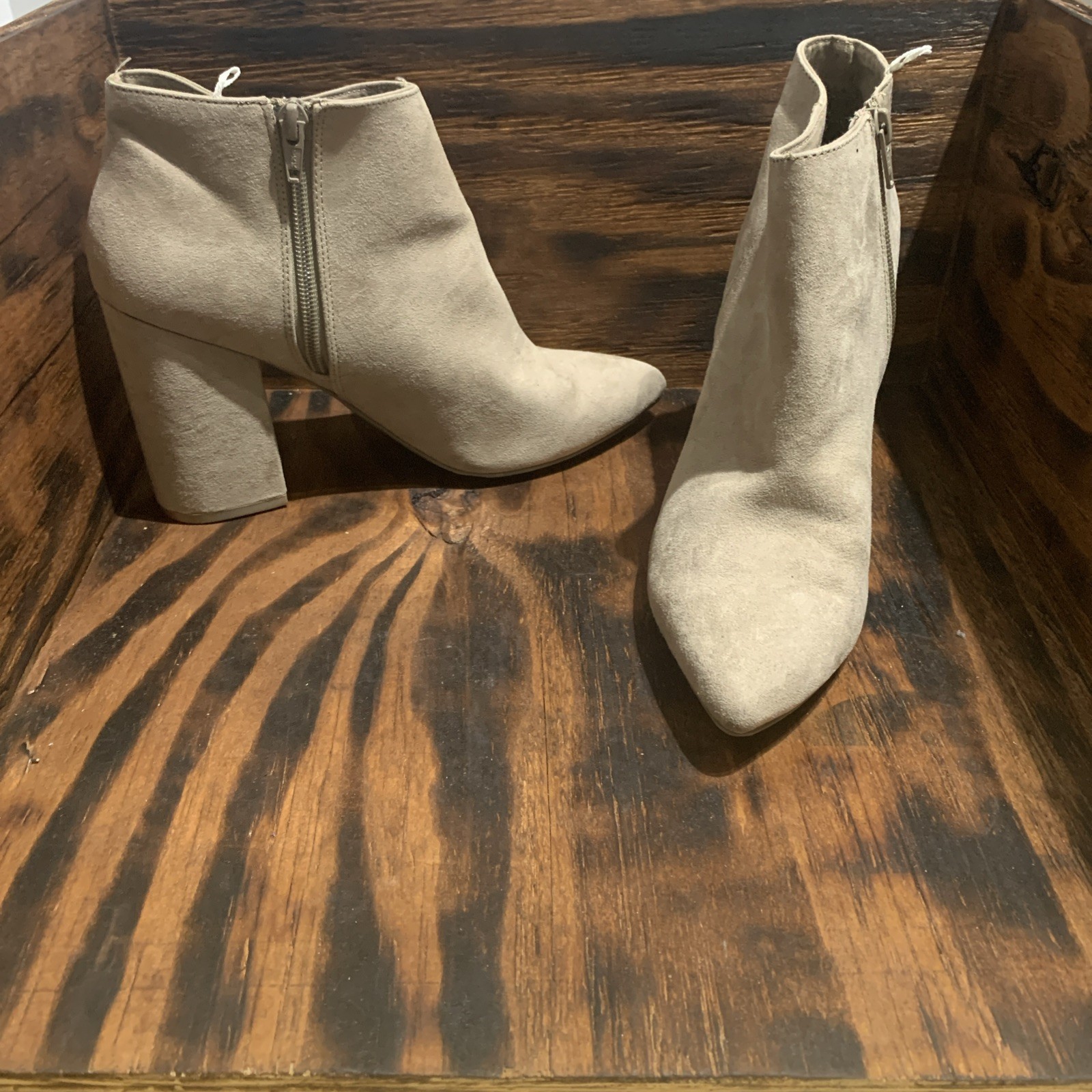Divided by H&M Ankle Boots Womens 8 Beige Pointed Toe Block Casual Comfort Suede