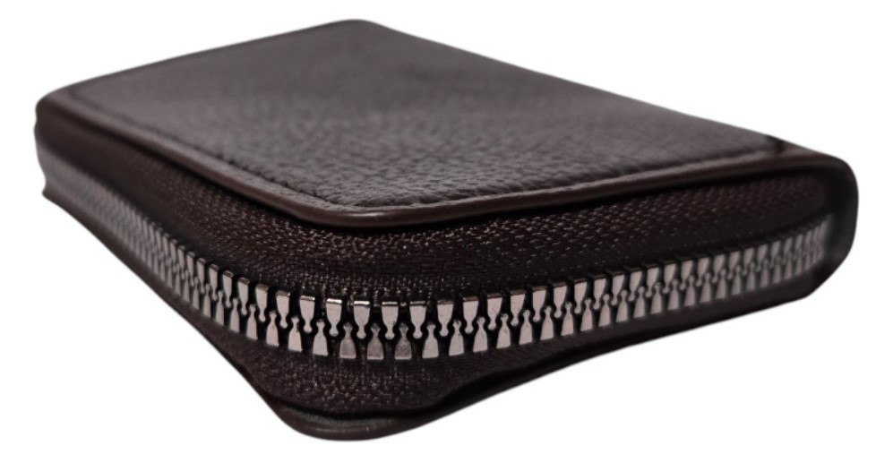 PU Leather Lightweight Durable Card Holder Compact Wallet w/ Secure Zip Closure