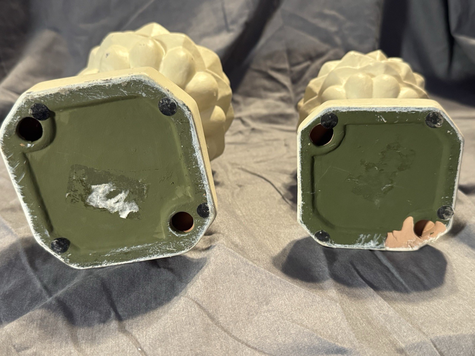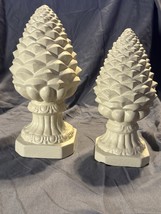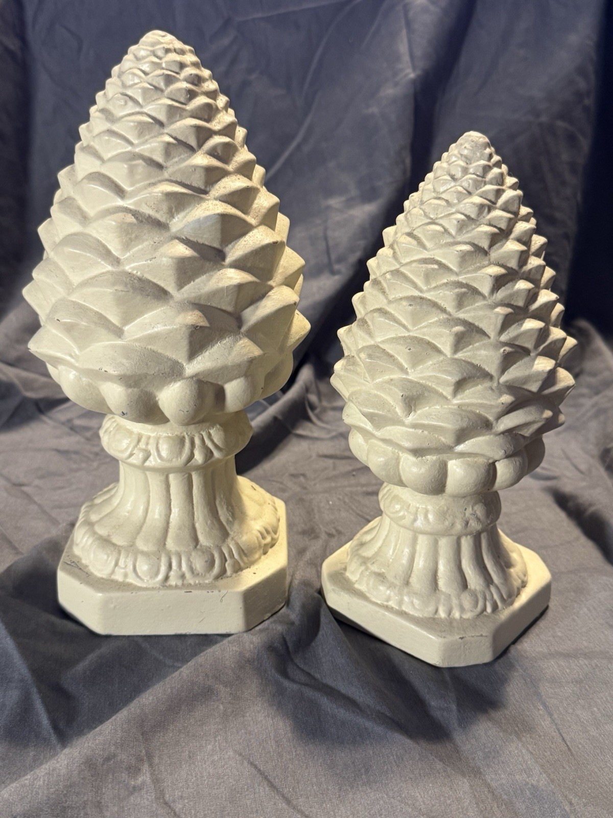 Pair Decorative Pinecone Finials Ivory Cream Pedestal Accents 8” & 10”