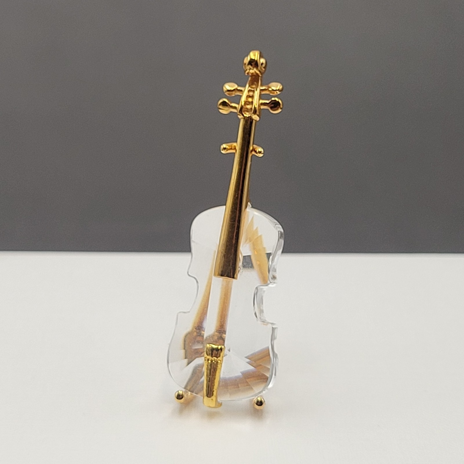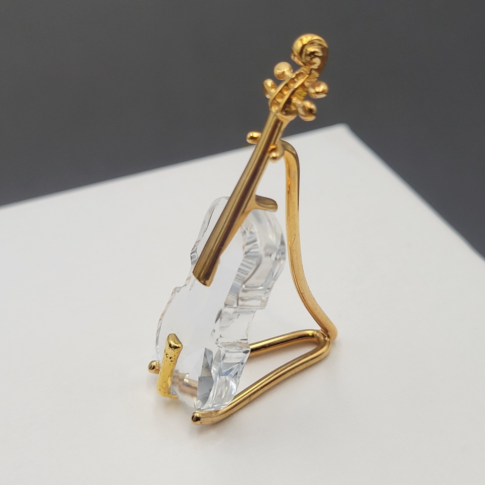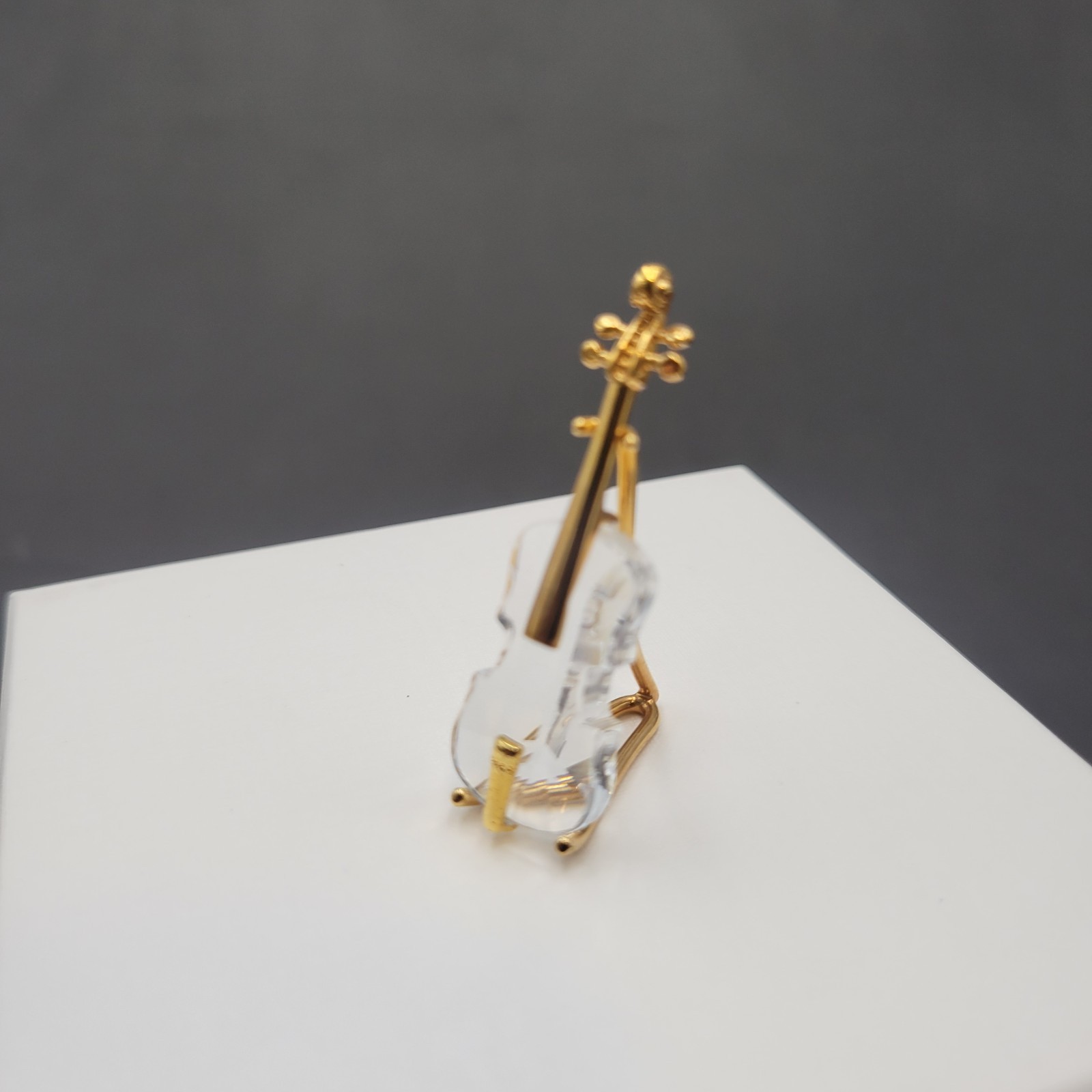 This product is a vintage Swarovski figurine from the Crystal Memories collection. It features intricate crystal detailing, specifically designed to resemble a violin with a stand.