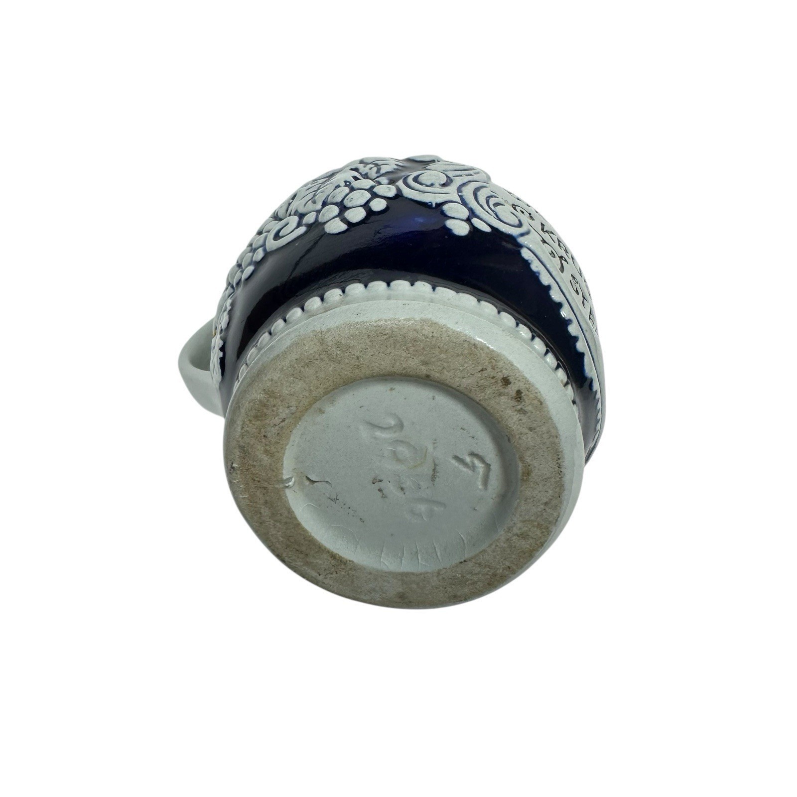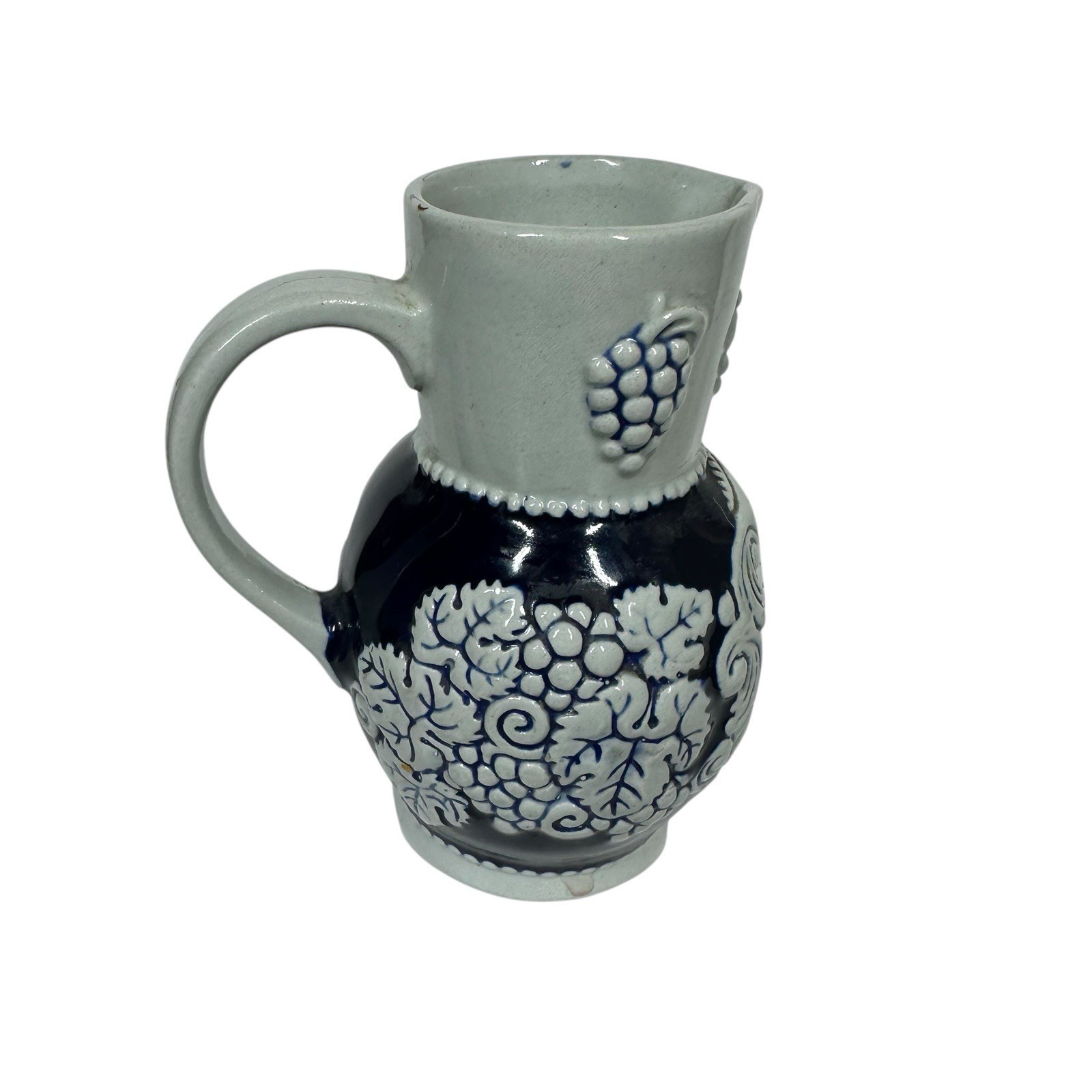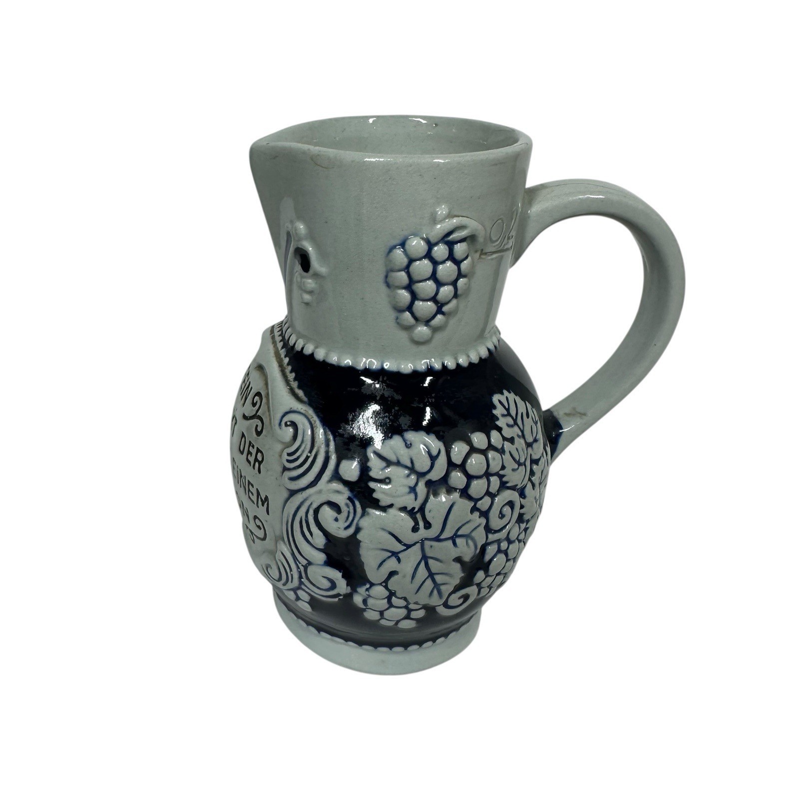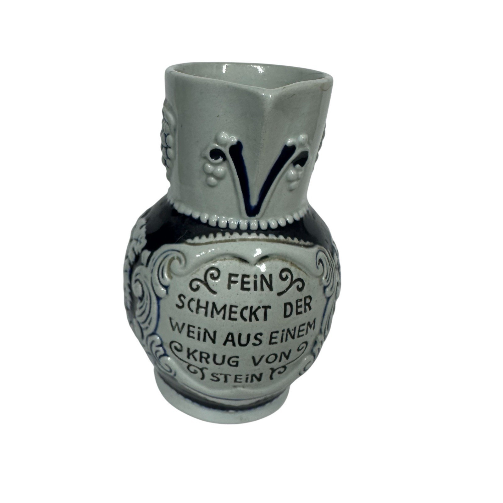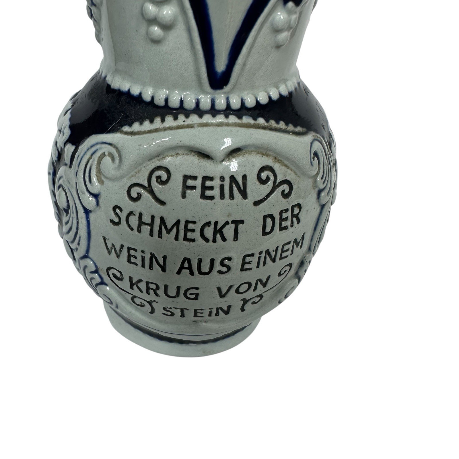 German "Fein Schmeckt Der Wein Aus Einem Krug Von Stein" Blue Salt Glaze Pitcher Vintage